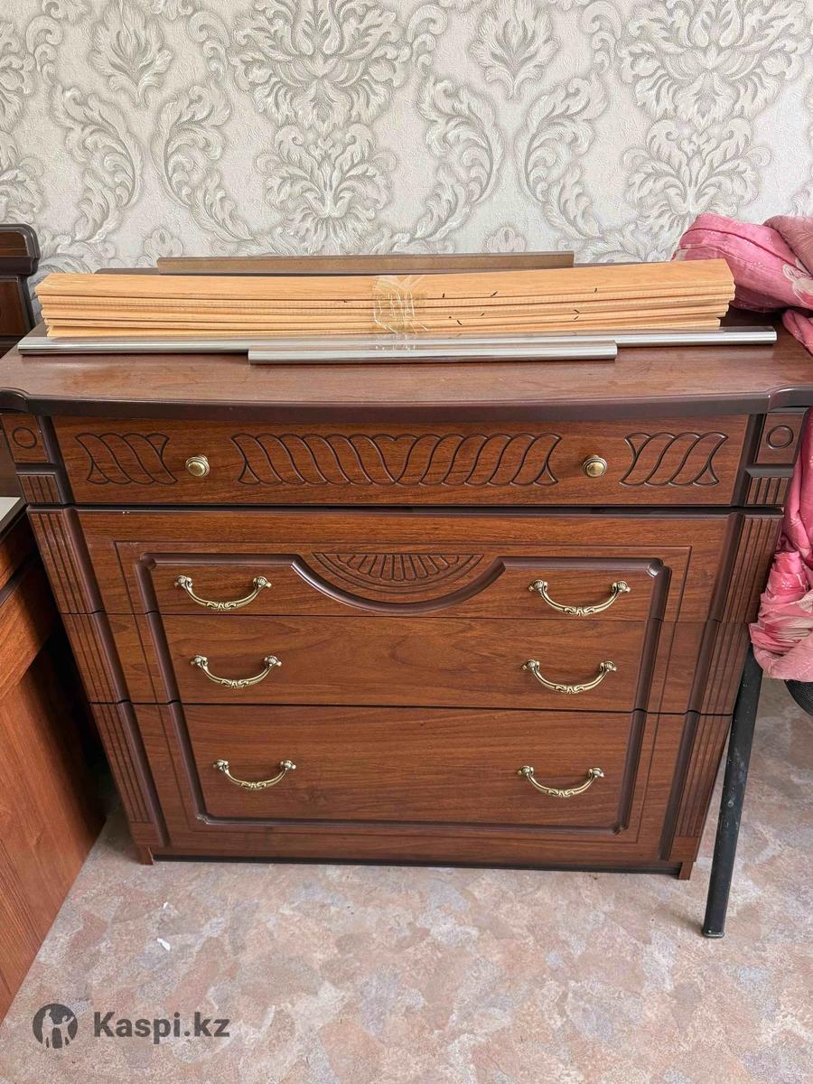 Спальный гарнитур. Производство Россия. Отличное качество. Кровать с матрасом. Две прикроватные тумбы. Шкаф с 2мя зеркалами. Комод отдельный с зеркалом. В собранном виде фотографии нет, но сам гарнитур в отличном состояний.