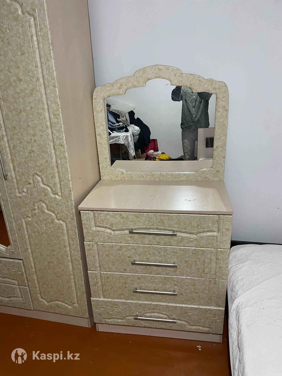 Внимание: Шкаф и трюмо находятся в селе Каракемер (по Кульджинской трассе, 60 км от Алматы), не в городе. Состояние очень хорошее — без сколов и царапин, всё целое, аккуратное. На фото мебель в собранном виде, сейчас разобрана для удобства перевозки. Все детали в комплекте. Также есть двуспальная кровать (она есть на фото), просто матрас сняли перед фотографированием. Только самовывоз. Цена указана за комплект. Если не беру трубку — пишите