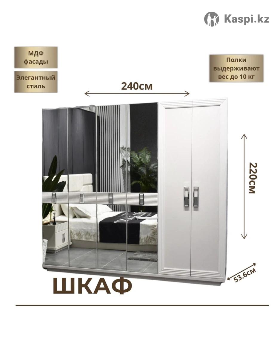 Спальный гарнитур Cavalli 6D — стильная и современная мебель для вашей спальни. Гарнитур выполнен в элегантном дизайне и отлично подойдет для создания уютного и комфортного интерьера. В комплект входит: • 6-дверный вместительный шкаф • Кровать с мягким изголовьем • Прикроватные тумбы • Комод с зеркалом Большой шкаф позволяет удобно разместить всю одежду и постельные принадлежности. Кровать с мягким изголовьем обеспечивает комфортный отдых, а комод с зеркалом добавляет удобство и завершает интерьер спальни. Преимущества: ✓ Фабричное качество ✓ Современный дизайн ✓ Надежная упаковка ✓ Простая сборка (есть инструкция)