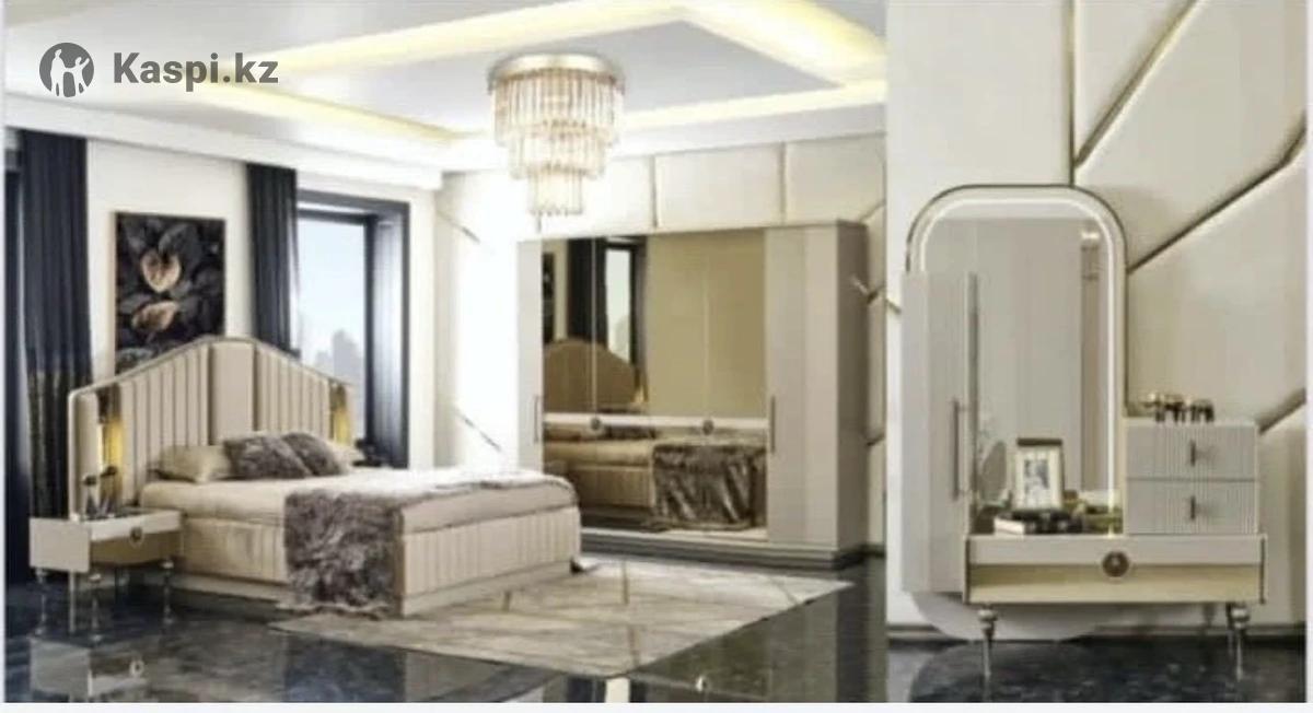 Продается элегантный комплект мебели для спальни в светлых тонах. Современный дизайн с золотистыми акцентами и мягкой отделкой создает атмосферу уюта и роскоши. В комплект входит: •Кровать с мягким изголовьем без матраса •Две прикроватные тумбы •Большой шкаф с зеркальными дверцами •Туалетный столик с зеркалом и выдвижными ящиками Состояние отличное, мебель без повреждений. Материалы — МДФ высокого качества, зеркала, хромированные ножки. Подойдет для просторной спальни, легко впишется в интерьер в стиле модерн, неоклассика или ар-деко.