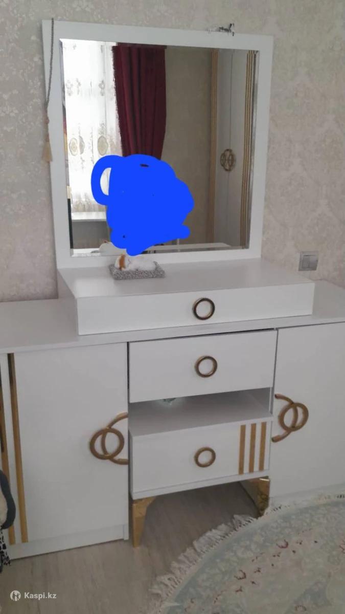Шкаф, кровать, екі тумбочка, айнасы бар стол