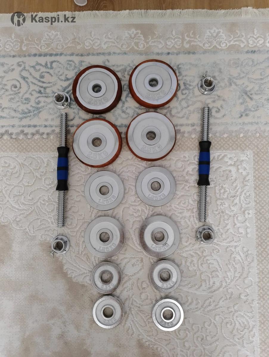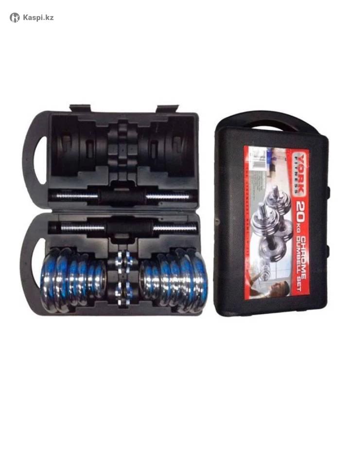 Набор гантелей общий вес 20кг. С пластиковым кейсом. Можно собрать в штангу. Набор новый.