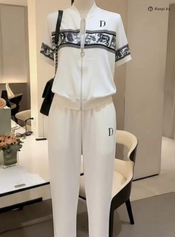 Комплект состоит из кофты на молнии с коротким рукавом и комфортных брюк. Кофта украшена стильным узором и декоративной буквой, что придаёт образу модный и аккуратный вид. Брюки свободного кроя с карманами обеспечивают удобство при носке.