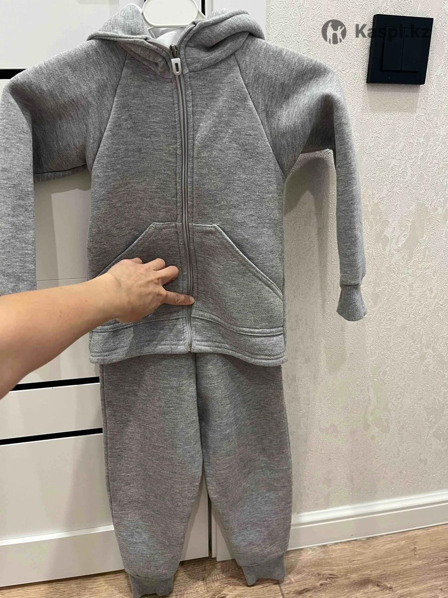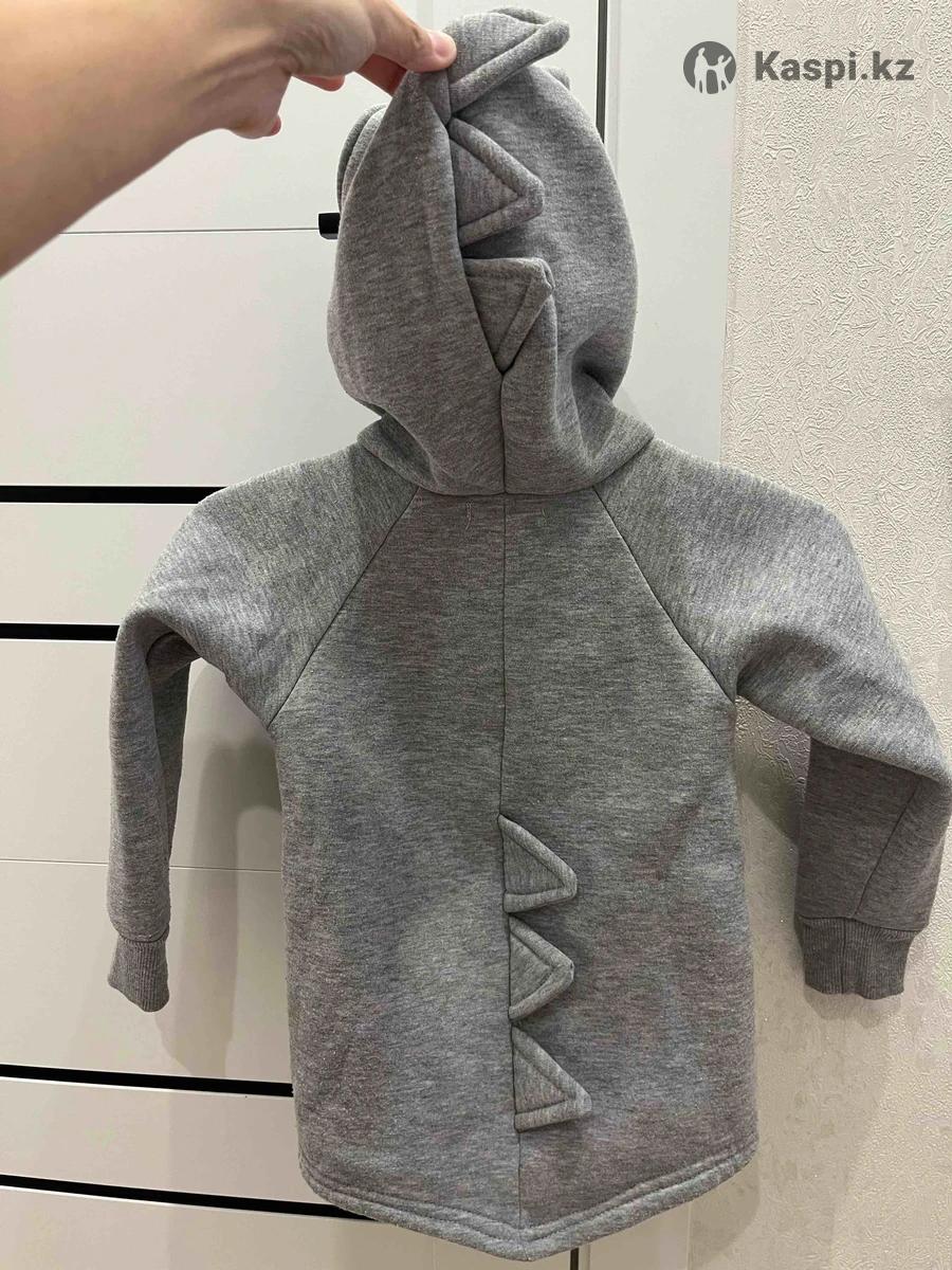 Размер указан 104, на 3-4 года примерно. Полная длина штанов от пояса до низа 56 см. Костюм утепленный. Сзади как динозаврик. Казахстанское производство. Очень хороший. Пятен нету, только катышки немного. Нам стал маленький. Цена 3000 без торга.