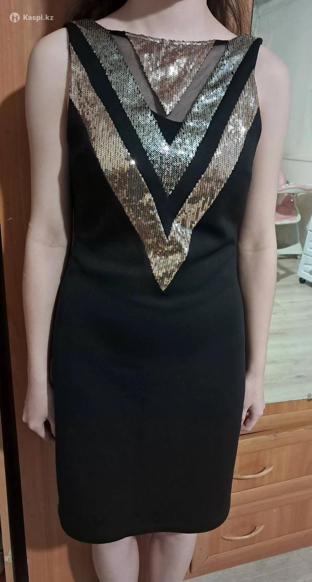 🔥 Стильное вечернее платье 🔥 Чёрное элегантное платье с золотыми пайетками — смотрится дорого и эффектно ✨ Подчёркивает фигуру, красивый вырез спереди и на спине. Идеально на выпускной, праздник или вечер 💃 Производство: Турция 📏 Размер: 46 💰 Цена: 6500 ❗ В отличном состоянии, надето всего 1раз Пиши в личку — забирай, пока не продали 😉