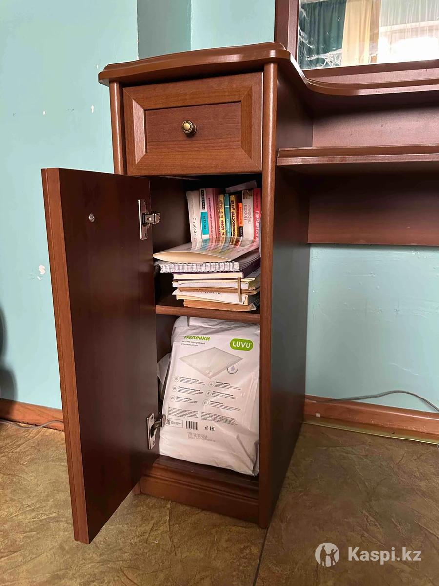 Комод в хорошем состоянии Легкий, подойдет под разные интерьеры, темное дерево, 4 полки и 2 выдвижные (смотрите фото) Отдаю за 15.000 торг не предлагать, зеркало в подарок