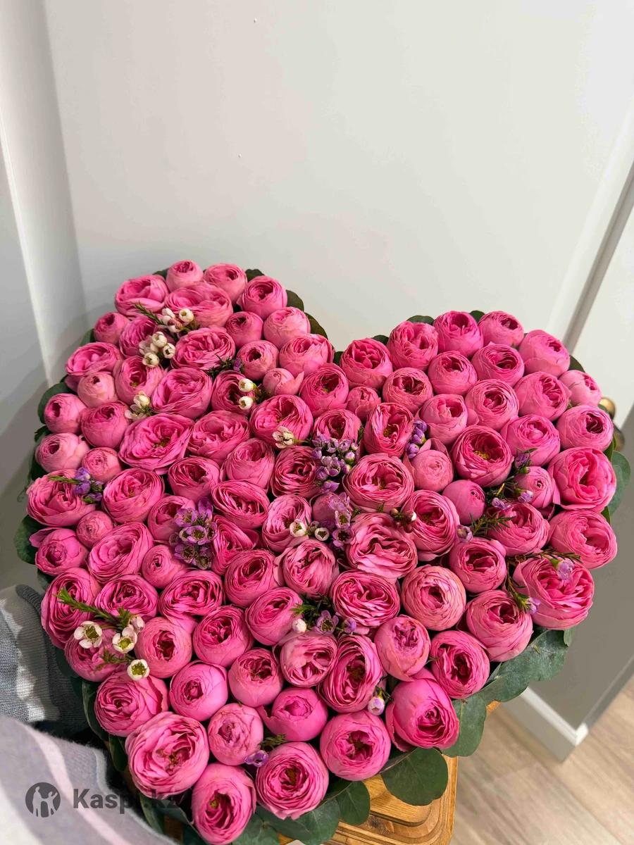 Пионовидные розы в виде сердца доставили два часа назад