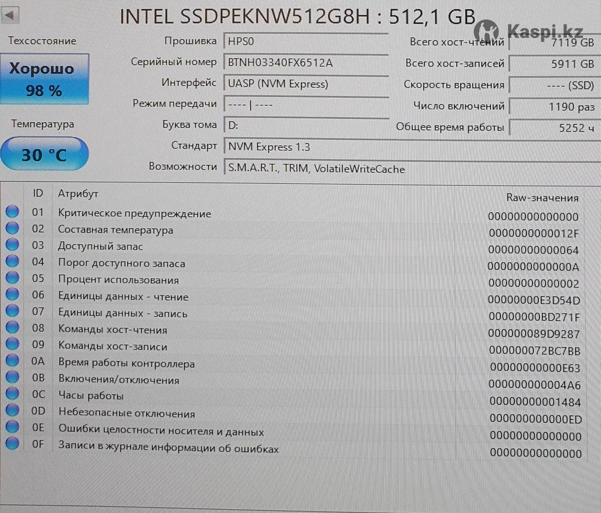 SSD диск Intel SSDPEKNW512G8 на 512gb в рабочем состоянии. В комплекте радиатор для диска.