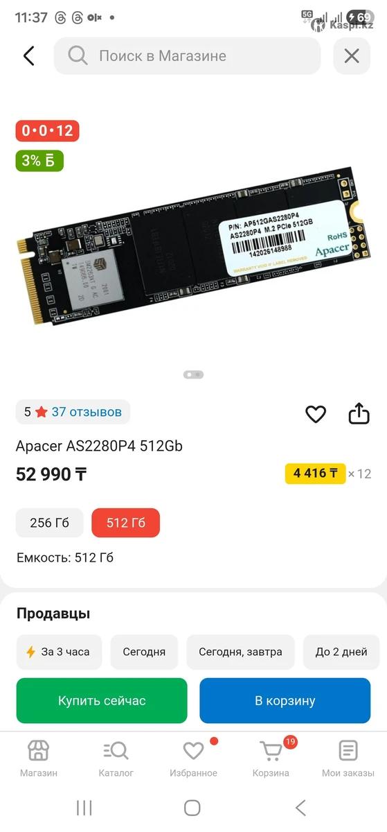 SSD M.2 накопитель Apacer AS2280P4 512Gb 52 990 т