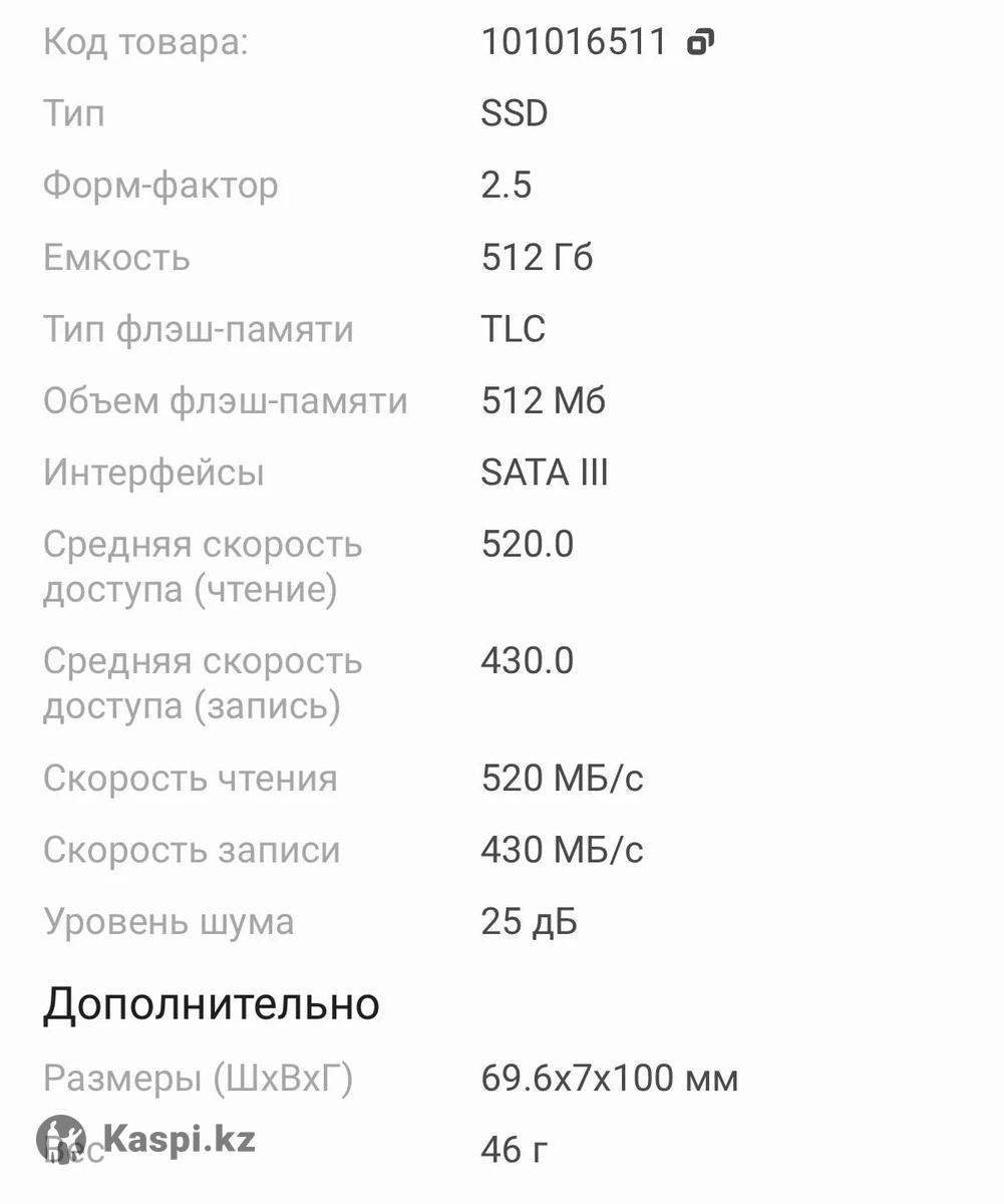 Продам почти новый SATA SSD 512гб в идеальном состоянии память не гоняли сс ней все отлично любые проверки вся информация про память находится на фото в комплекте сам ssd диск и провод подключения к материнской плате
