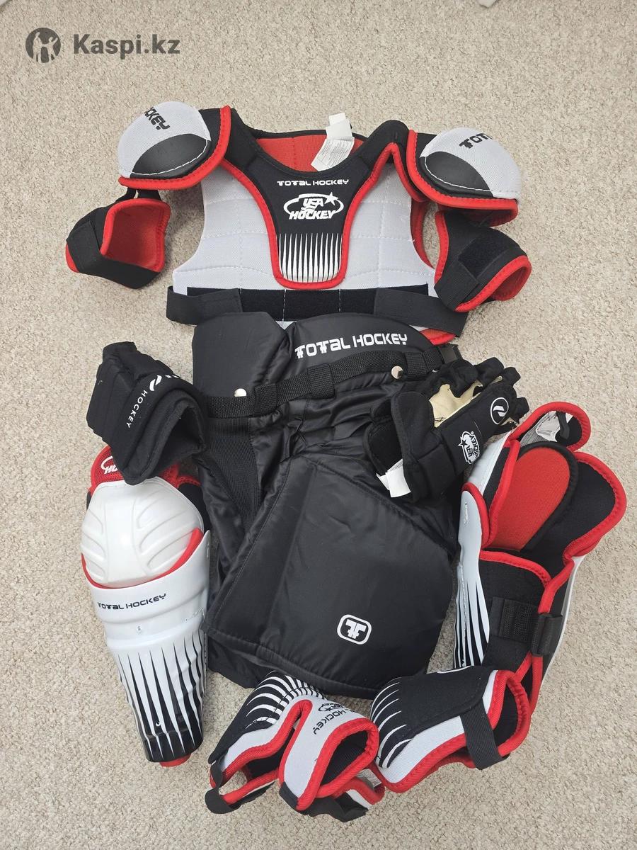 Новая детская хоккейная амуниция, на рост . Нагрудник, шорты, перчатки, щитки, наколенники.