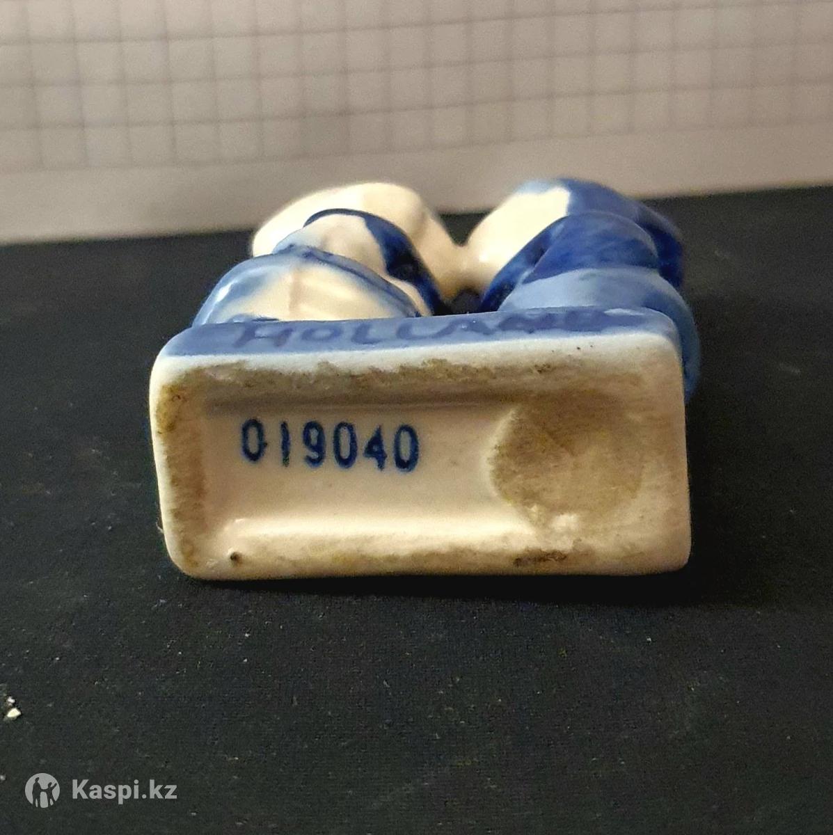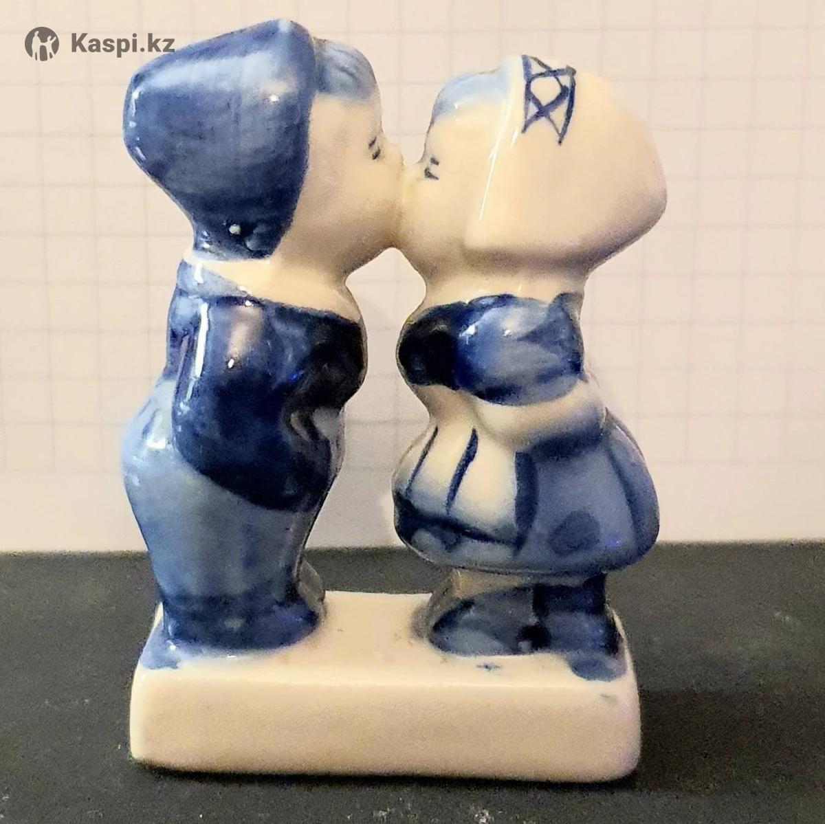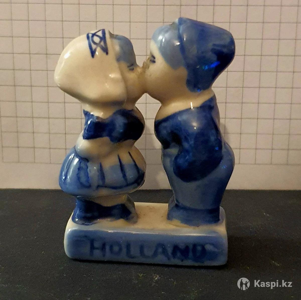 Это классическая статуэтка в стиле Делфтского фарфора (Delft Blue), изображающая знаменитую «Целующуюся голландскую пару». Такие фигурки являются одним из самых узнаваемых символов Нидерландов. Основные сведения Сюжет: Мальчик и девочка в традиционных голландских костюмах (у девочки — характерный чепец, у мальчика — бескозырка и шаровары). Стиль: Дельфтский синий (Delfts Blauw). Это вид росписи, где на белую глазурь наносится рисунок кобальтовым синим цветом. Надпись: Надпись «HOLLAND» на подставке указывает на то, что это популярный сувенир из Нидерландов.
