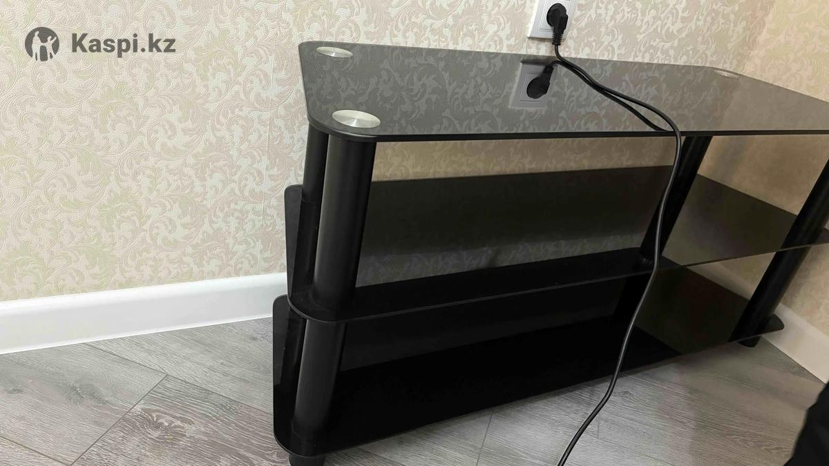 Стеклянный подставка под телевизор в цвете черный, размер длина 110см, ширина 35см, высота 50см