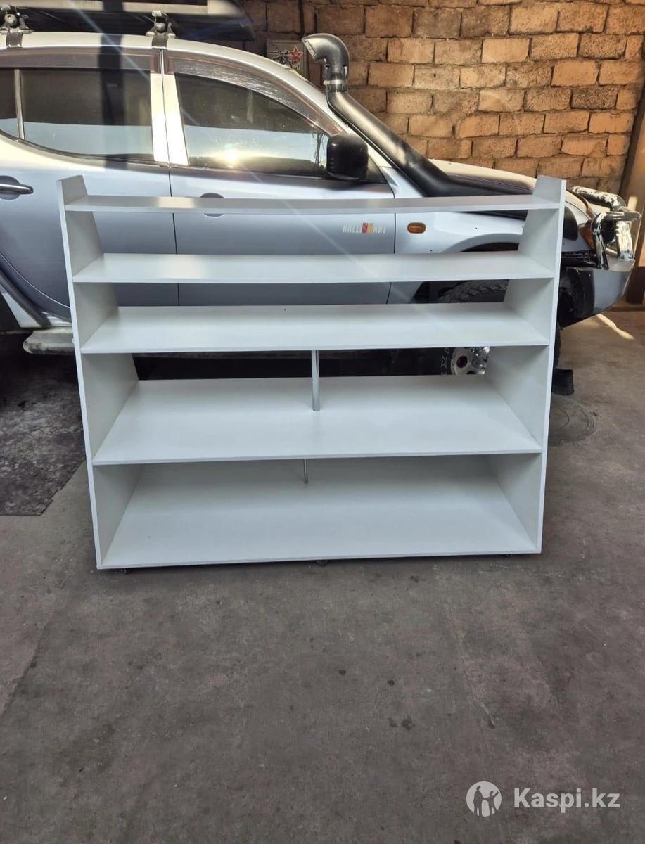 Стеллаж шириной 160, глубина 90,высота 124. Можно использовать под разную продукцию. Имеются колесики для передвижения. Цена 40000т