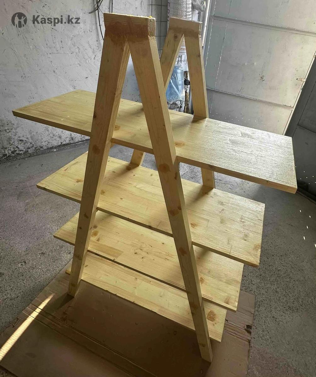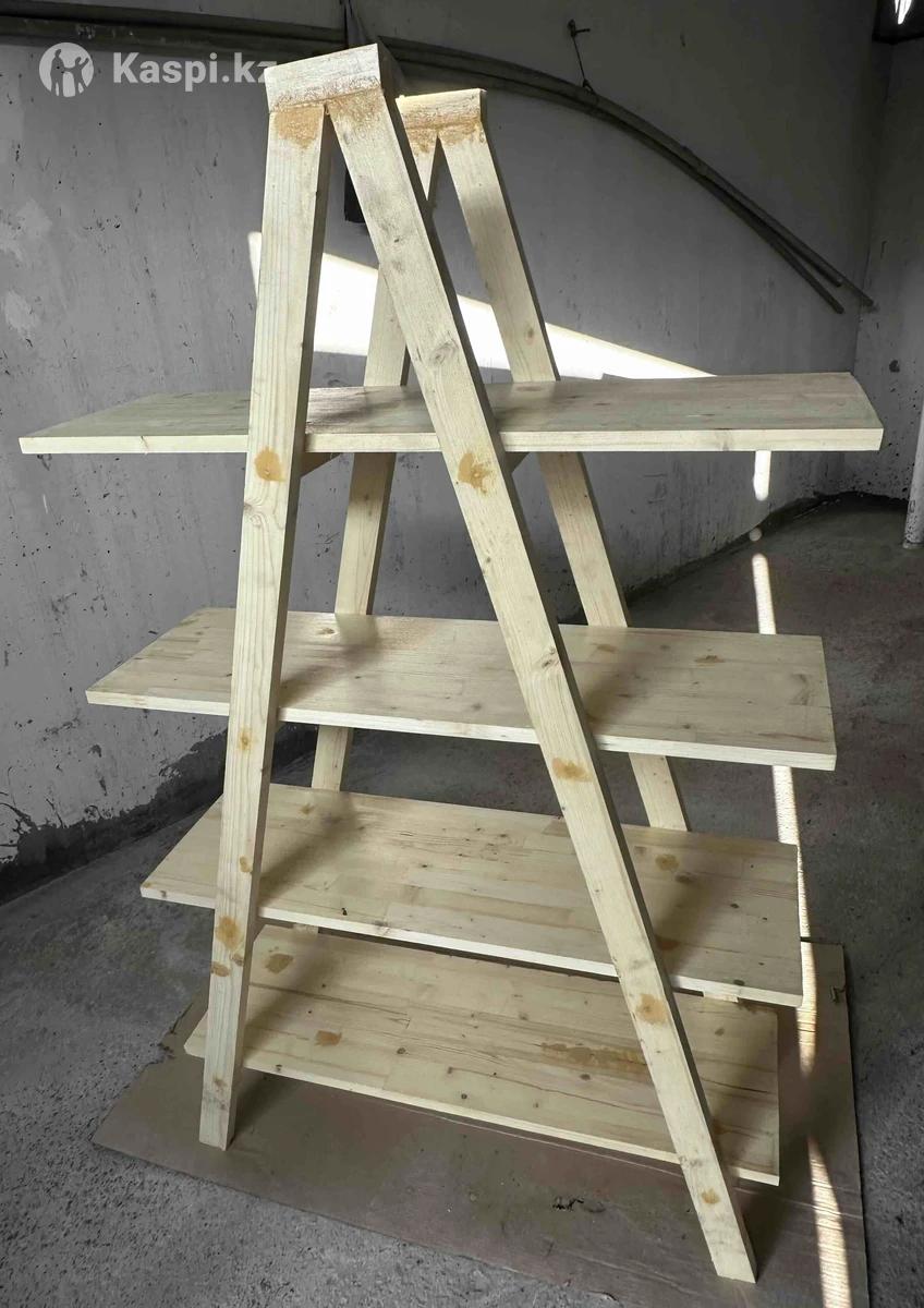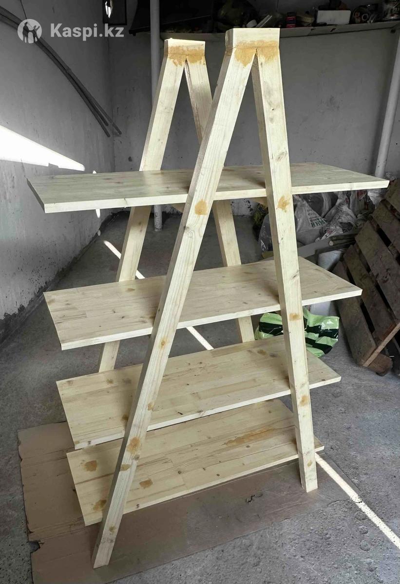 Экологичность и натуральность: 100% сосна — дышащий материал без вредных примесей, приятный аромат дерева. • Устойчивость: A-образная форма с несколькими уровнями полок обеспечивает стабильность даже при нагрузке. • Универсальность: Подходит для хранения книг, инструментов, цветов, сувениров или даже как витрина для handmade-товаров. • Ручная работа: Уникальный дизайн, который добавит тепла и индивидуальности вашему интерьеру. • Легкость: Весит немного, легко переносить и устанавливать. Высота 1500мм Ширина 900мм Глубина 360мм Цена 35000, Торг