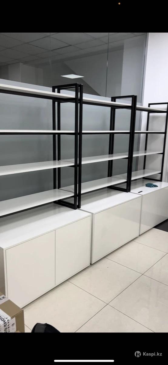 2 стеллажа, 4 стеллажа с глубокими тумбами, ресепшн, два стула. Центр города, идеальное состояние