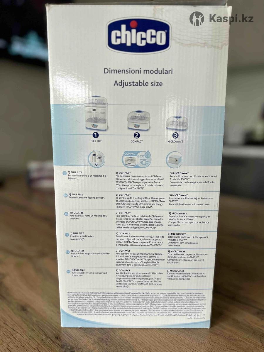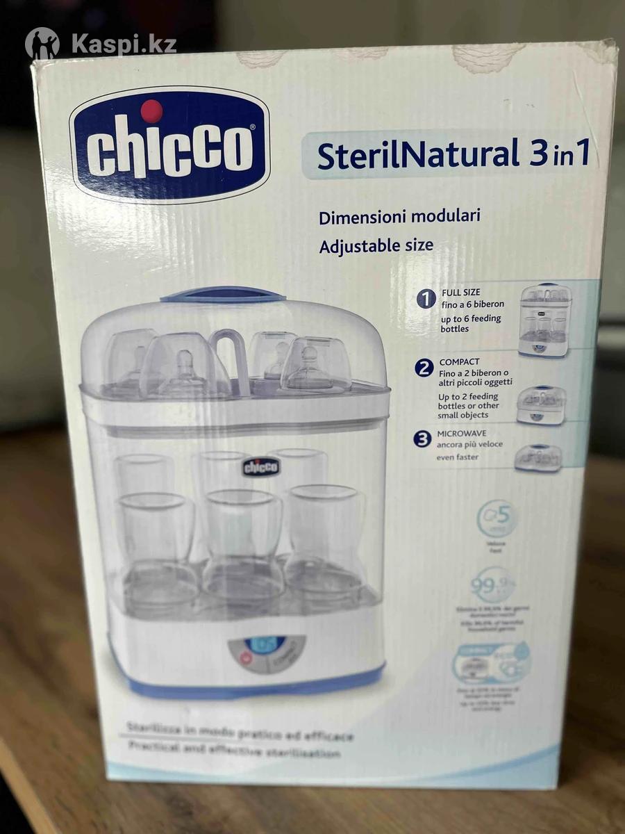 Chicco электрический паровой стерилизатор 2 в 1 с изменяемой высотой стерилизует все детские предметы ( бутылочки, соски, пустышки) и не занимает много места. В отличном состоянии , пользовались не долго, очень удобно. Есть Каспи рассрочка и Red