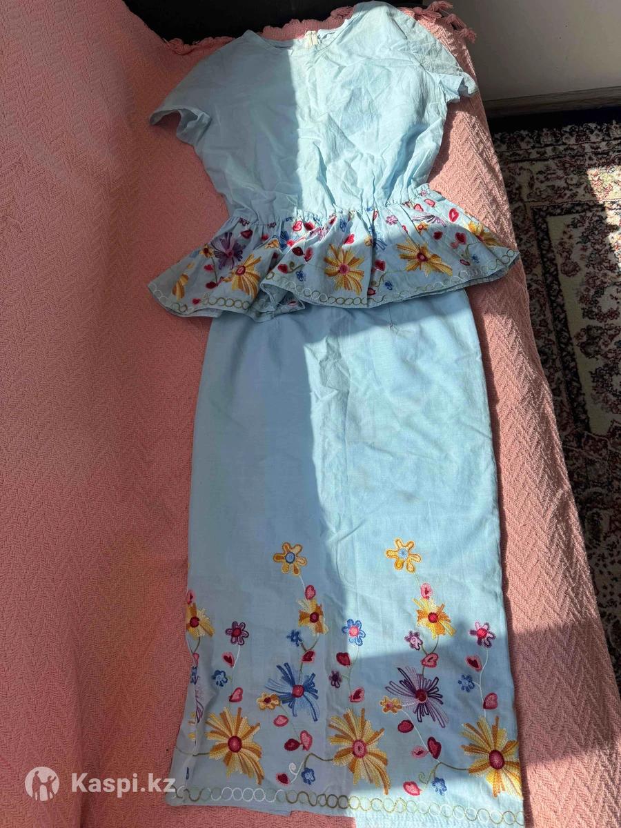 Нежный голубой цвет с яркой вышивкой Комплект: блузка + юбка — женственно и нарядно! Размер 40 Шито на заказ Одевала всего один раз