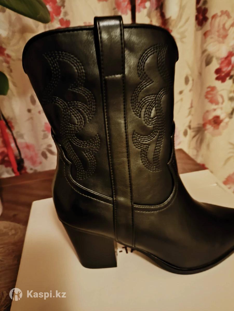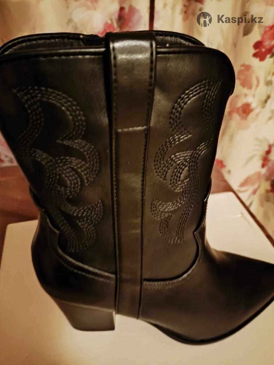 Стильные женские ботильоны-казаки Состояние: абсолютно новые, в коробке 🖤 Цвет: черный Материал: экокожа высокого качества Каблук: устойчивый, удобный — 7 см Носок: заостренный, визуально удлиняет ноги Декор: стильная ковбойская прострочка, молния сбоку, петельки сверху Размер: 40 Подходят как под джинсы и платья, так и для офисных образов. Стиль — “western chic”. Отличный вариант на осень 🍂