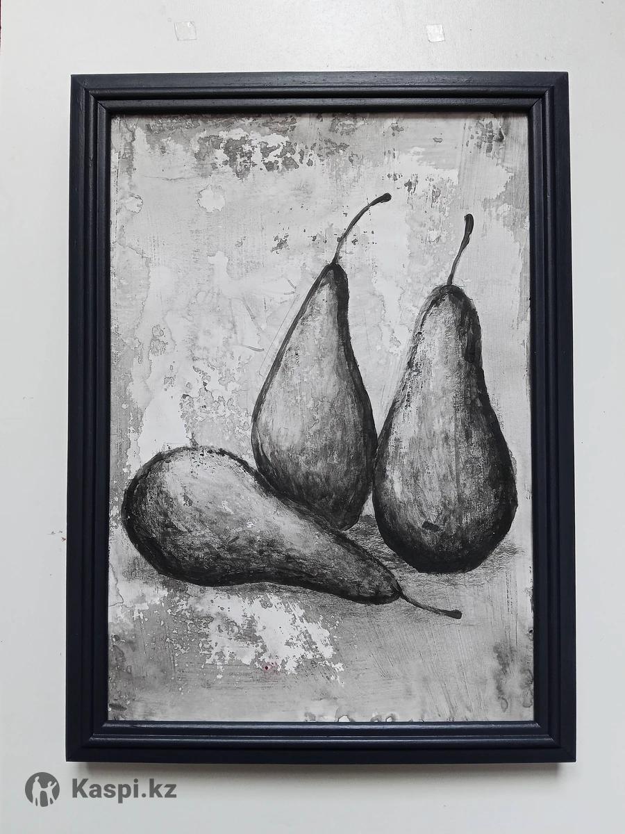 Современный натюрморт Груши в актуальном крафтовом артизанальном стиле Arts & Crafts. Монохромная декоративная живопись выполнена на акварельной бумаге акриловыми красками. Для ценителей контрастных приемов в интерьере и насыщенных акцентов.. Размер А4. Рама - дерево, цвет темный графит (НЕ черный). Подарок со вкусом, тем у кого всё есть.
