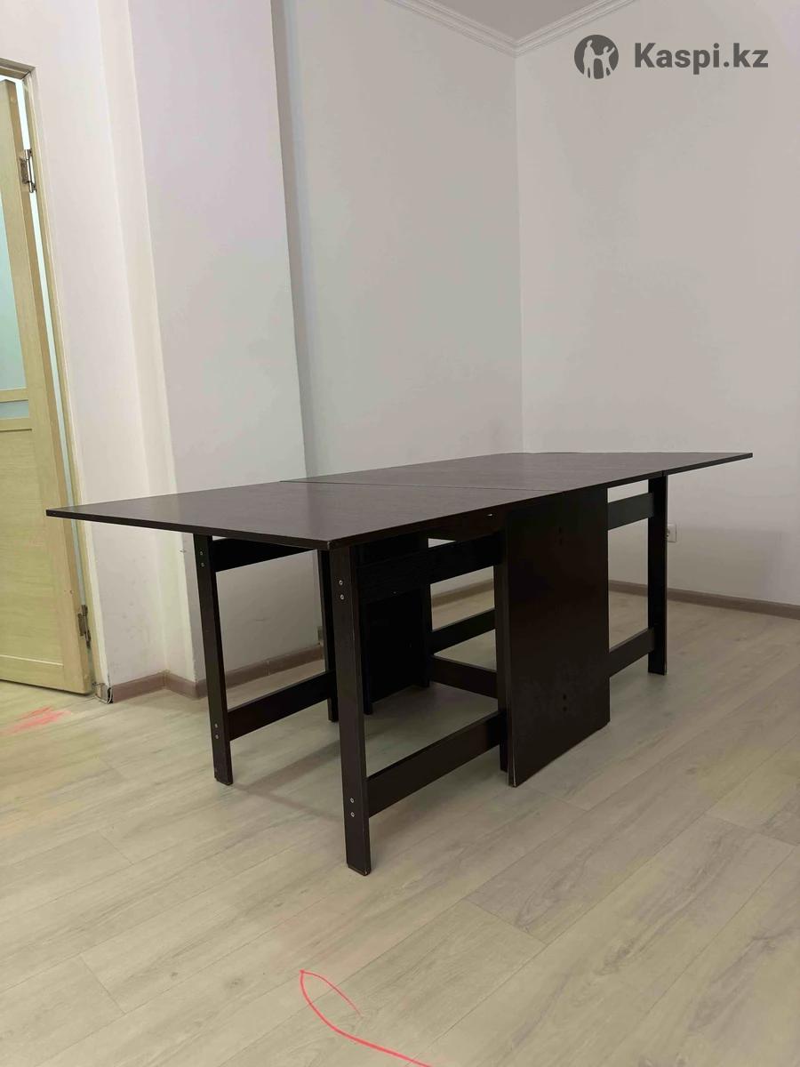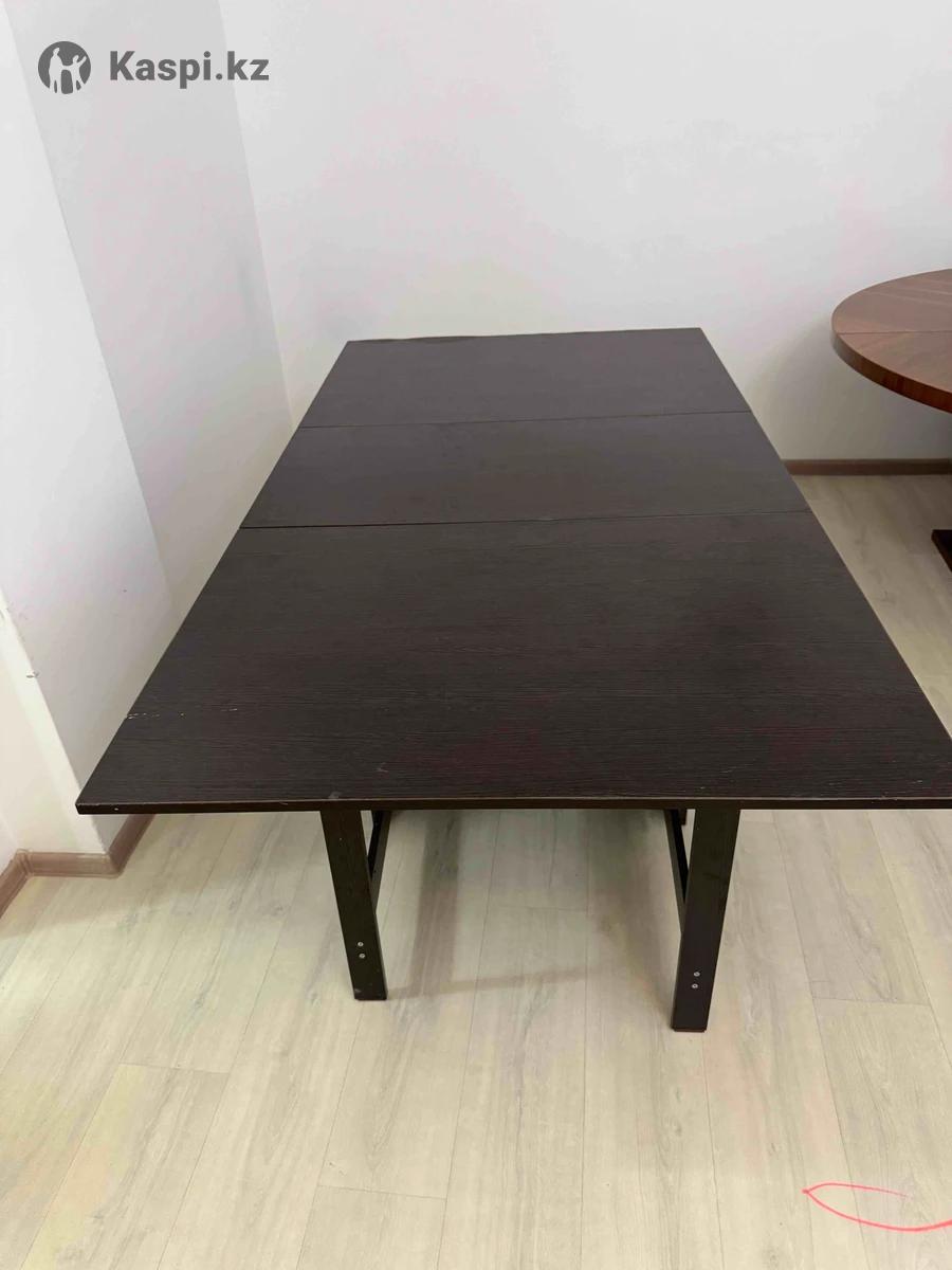 Продается стол-книжка б/у в хорошем состоянии, 190х100х75. Состояние: хорошее, без поломок. Цвет: темный (венге). Механизм раскладывания: исправный. Цена: 30 000. Самовывоз, Астана, пр.Улы дала, 51.