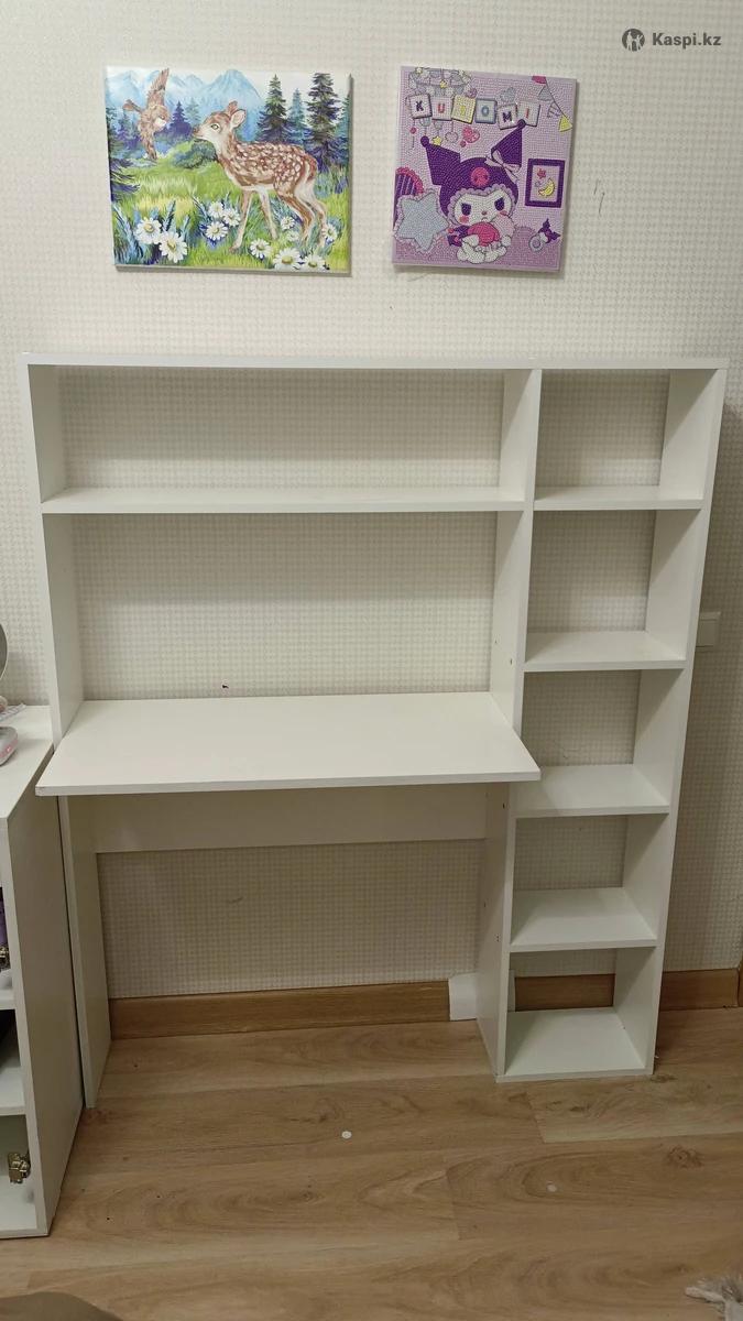 Продам рабочий стол для учеников: 1. Высота - 140 см; 2. Рабочая поверхность 40х80; 3. Полки сбоку: высота - 21 см, длина - 30 см, глубина - 20 см; 4. Цвет - белый;