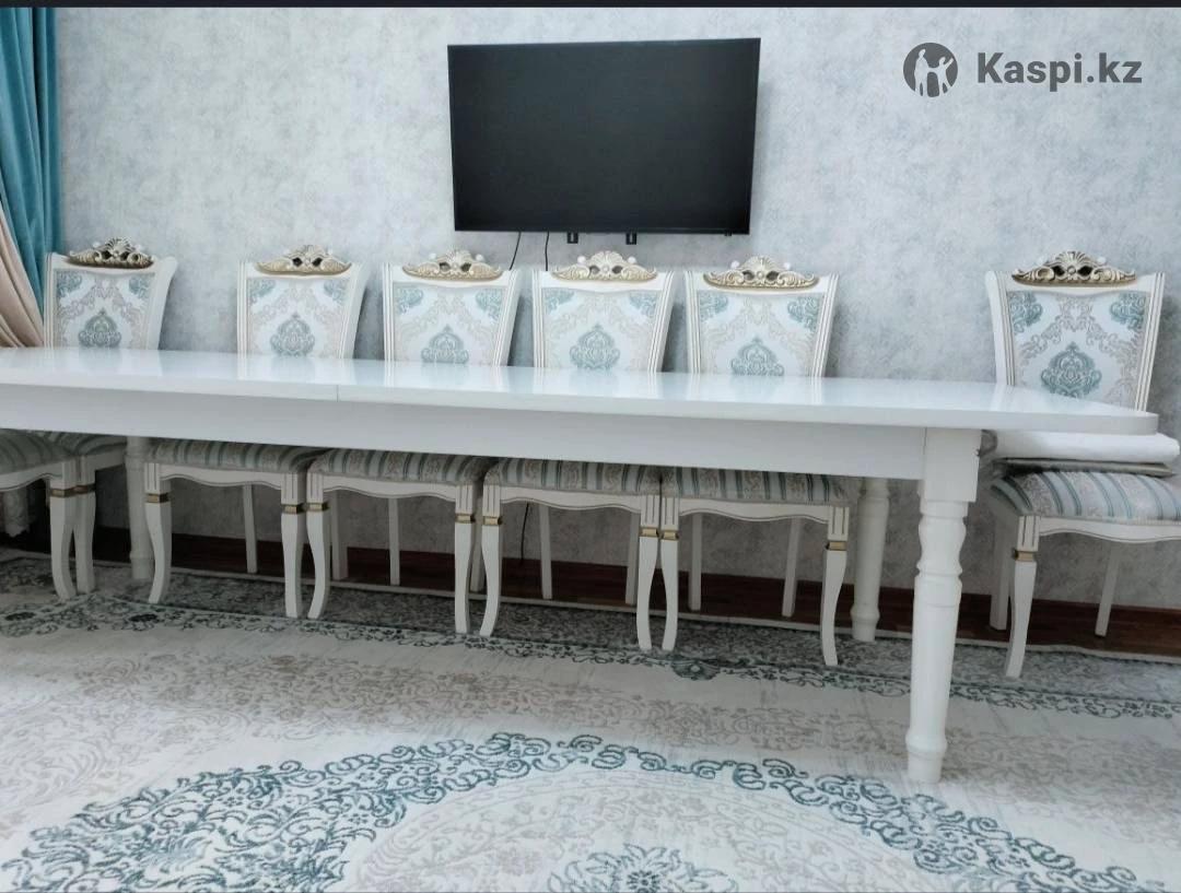 Стол рр. Ұзын. 3м. Ені 1/15см.60000тг. Стулья Королевский 12шт. 14000тг. Штугы.Жағдайы жақсы жаңалау. Келісім бар. Бөлекте сатылады стол жеке.