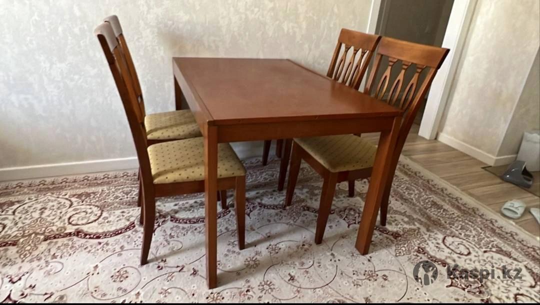 Продам стол и стулья 4шт про-во Малайзия в хорошем состоянии, крепкие, устойчивые стулья, стол раскрывается до 180см. Закрытом состояний 80140см Район Президентского парка!