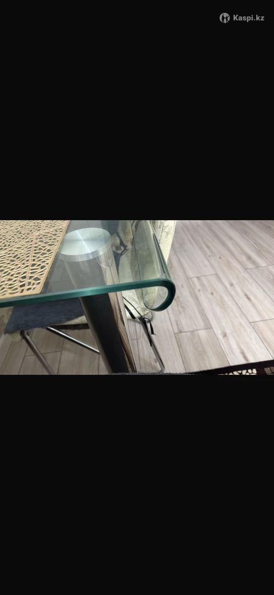 Покупал 2021 году за 850$ Продается стильный и современный стол из закаленного стекла — прочный, надежный и безопасный в использовании. Стекло устойчиво к ударам, перепадам температуры и царапинам. Сделал ремонт и надо новые вещи купить единственный минус 1 ногу нужно прикрепить клеем и все