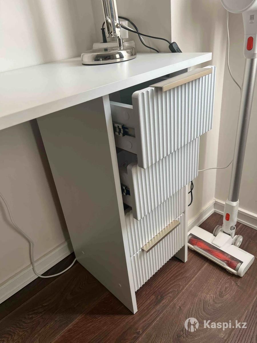 Элегантный стол выполненный в белом лдсп аккуратно выполненными отсеками для хранения всякой мелочи. Подходит как для школьников (говорят за ним оценки за домашнюю работу подлетают до 6) Так и для компьютерной работы (дедлайны +3 дня) Может и подойдет для косметических нужд, за ним женский пол рисует стрелки с 1 раза Куплен на ОЗОНЕ в лучшие времена, принес много радости и счастья Продавая надеюсь, что принесет радость и будет служить верой и правдой Почти в идеальном состоянии Размеры: Ширина 106 см Высота 75 см Глубина 45см 3 полки 4 ящика