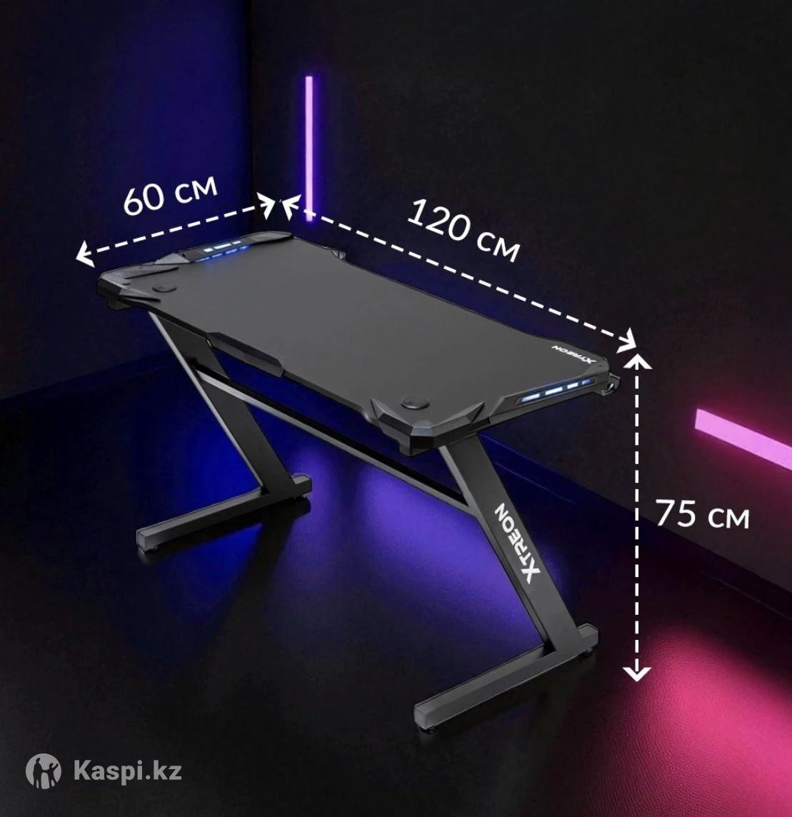 Стол компьютерный XTREON с размером 120х60x75 см, черный Прочная металлическая основа Вес 19.2 кг. Есть подсветка.