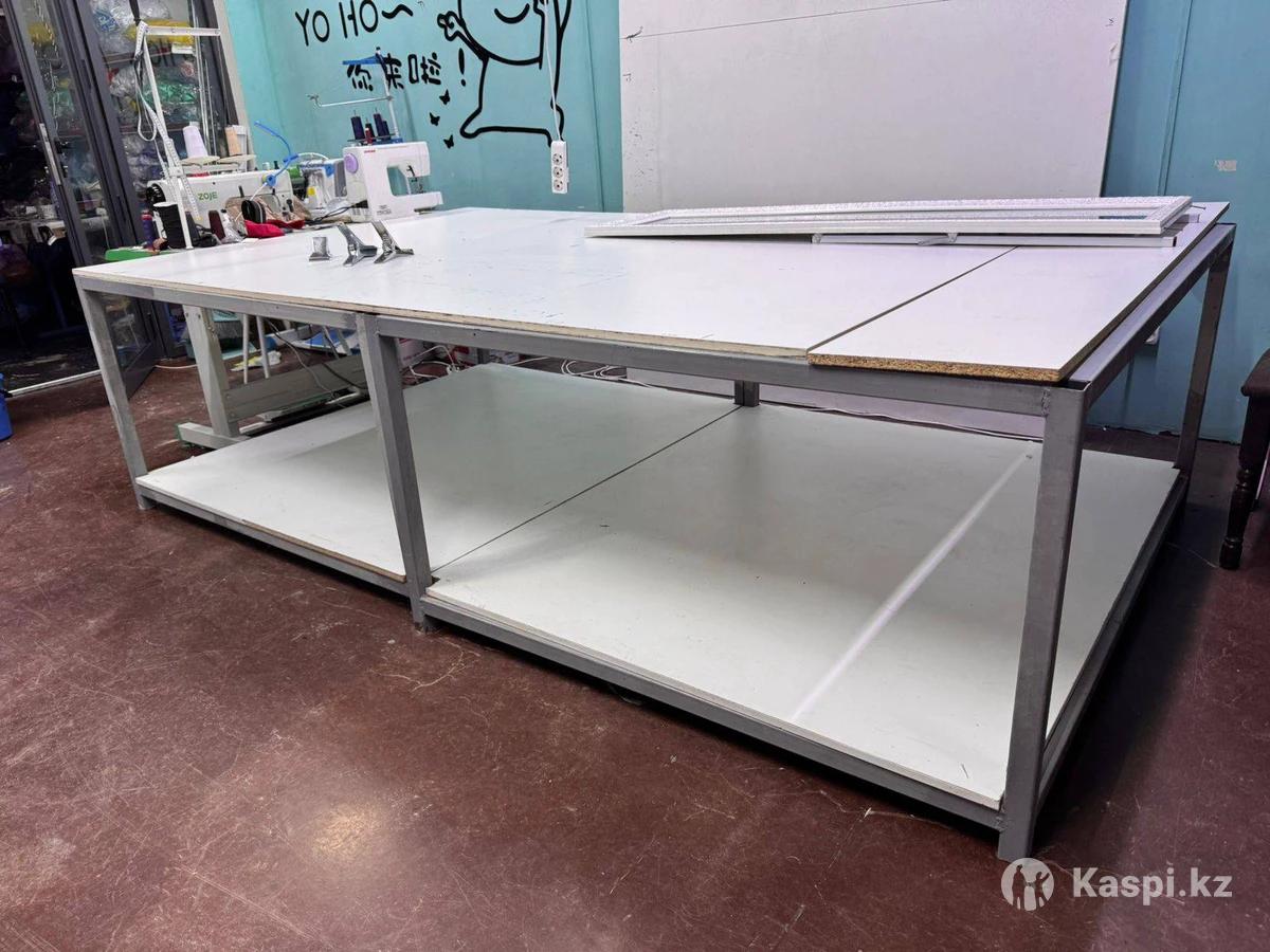 Стол крошечный 3м на 1,6м,каркас из металла,из двух отдельных столов по 1,5 метра,снизу полка для тканей,очень прочный и лёгкий