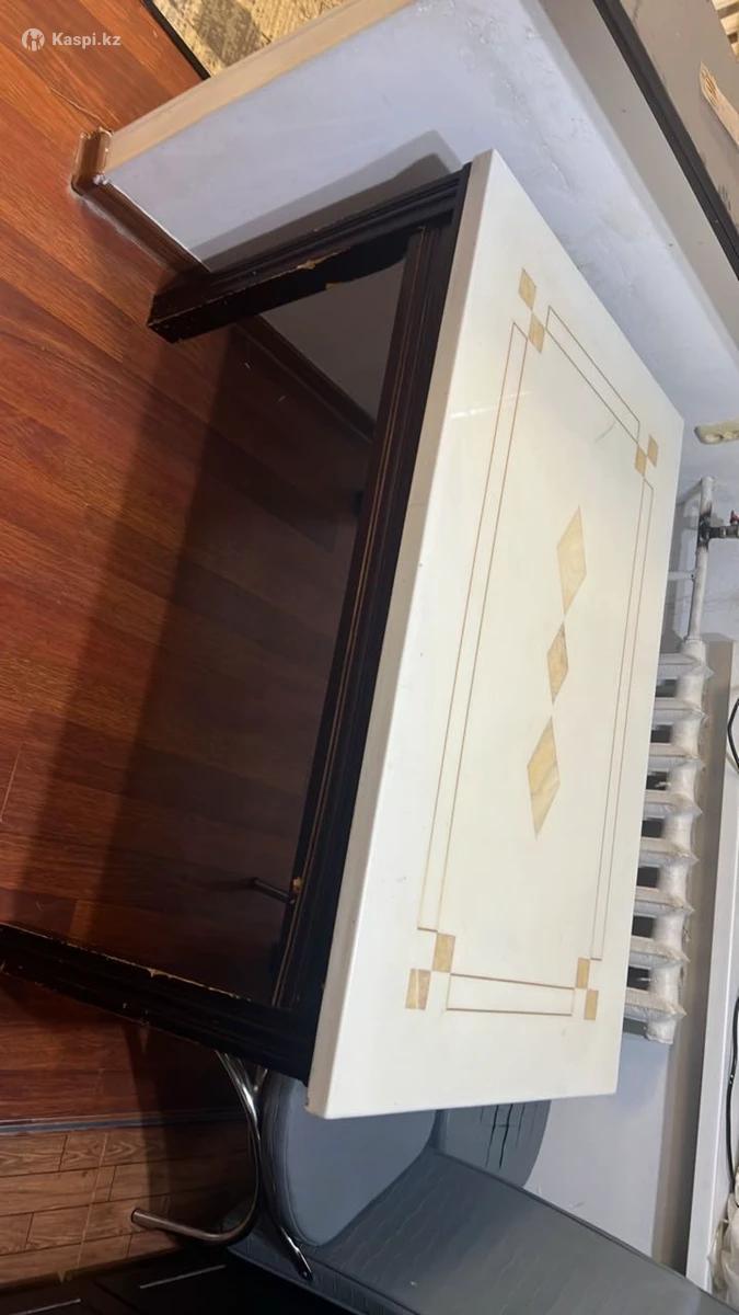 Столешница каменная, очень тяжелый стол. Ножки крепкие, прослужит еще очень очень долго. Размер примерно ширина 80 см, длина 120 см