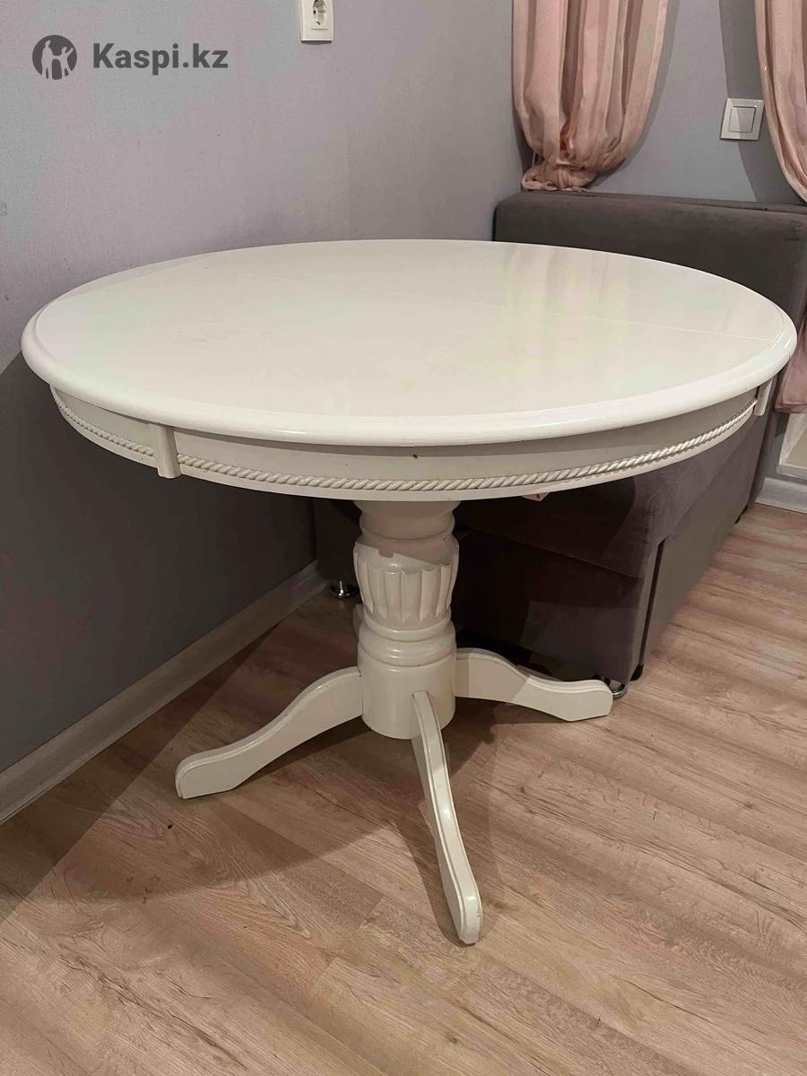 Продам стол кухонный трансформер круглый белый. Диаметр 90см, раскрытом положении 90х125см. Производство Малайзия. Состояние отличное прочное. Подходит для маленькой кухни. Находиться в ЖК Арнау.
