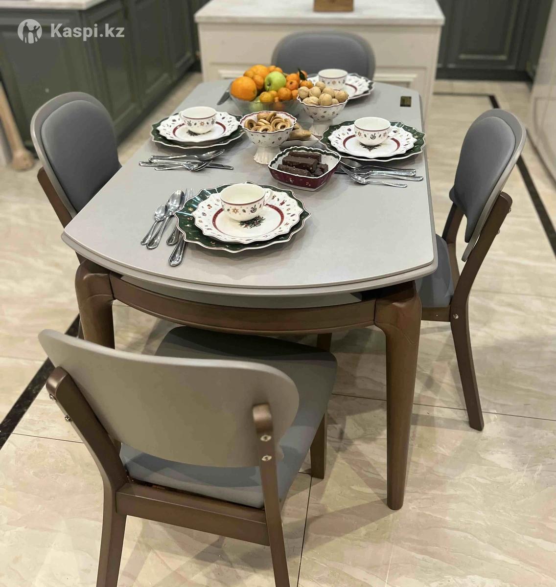 Стол кухонный , ножки дерево , поверхность стола камень , не царапается. Прочный материал. Размер 130 130 в круглом виде . В собранном 130 80 . Качество 🔥Поторопитесь не большое количество. Цена стол -170000, стулья 28000 . Отдаем по с себестоимости
