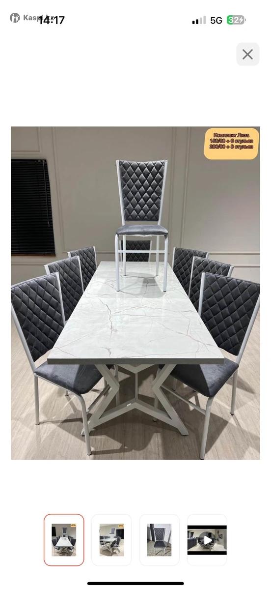 Стол со стульями 8 шт. Состояние новое. Брали недавно. В связи переездом продаем. Пишите на . Есть каспи рассрочка