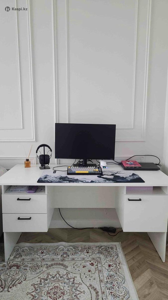 Письменный стол белого цвета в пользовании был 4 месяца в отличном состоянии. Сделан из качественного материала. Имеет удобные полки для хранения.