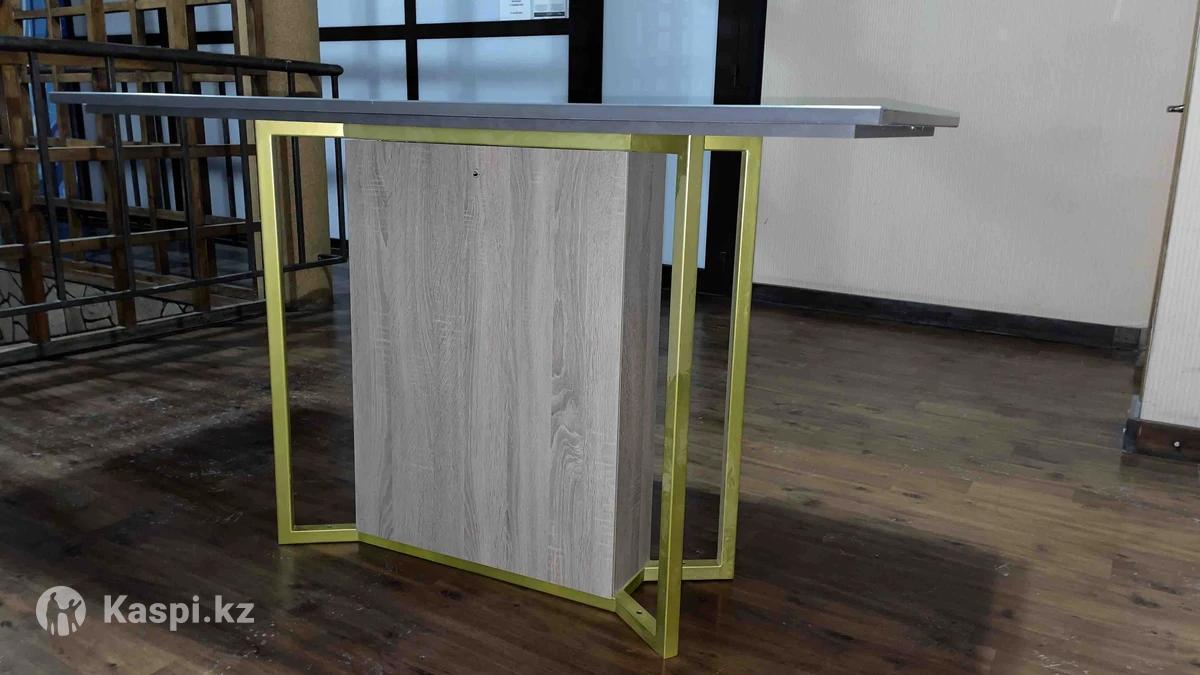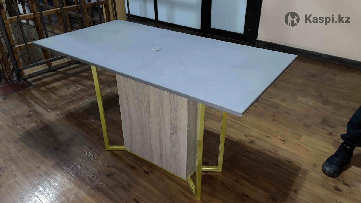 Стол и искусственным камнем Высота 90см Размер 140х70 Стол сделан под индивидуальный заказ. Не был использован. Состояние новое Подойдет для офисных оборудований или же в торговый зал презентовать электрический товар. На столе есть отверстие для шнуров. Нижний стойка стола на магнитной открывашка для доступа тех шнуров от стола. Срочно продам. Есть торг. есть полный обзор видео