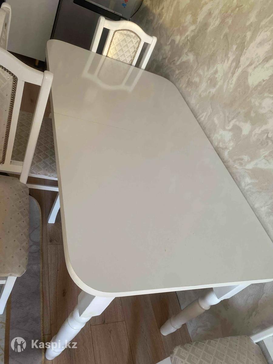 Продаю обеденный стол с 6 стульями. Состояние отличное. Поломки нет. Размер стола 150(+ на 50 см раздвигается)х100. Цена договорная. Самовывоз с района мечети Хазрет Султана