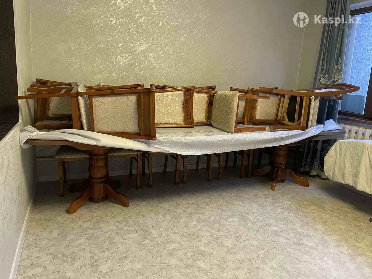 Срочно продаю стол со стульями связи с переездом, все вопросы по телефону или . Стол собран в виде три м, раскрытом виде пять м . Стулья двадцать штук. Состояние видно на фото