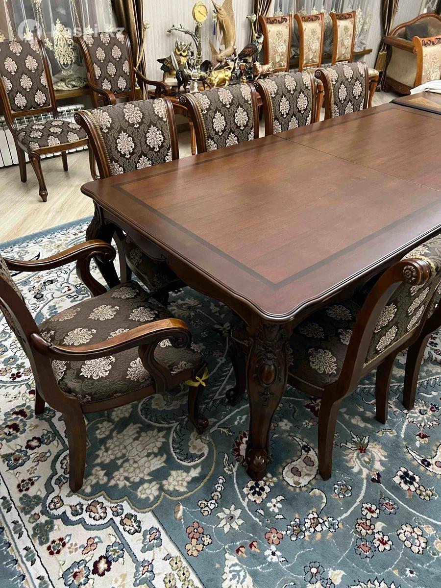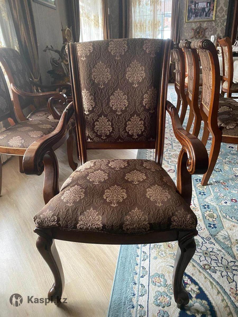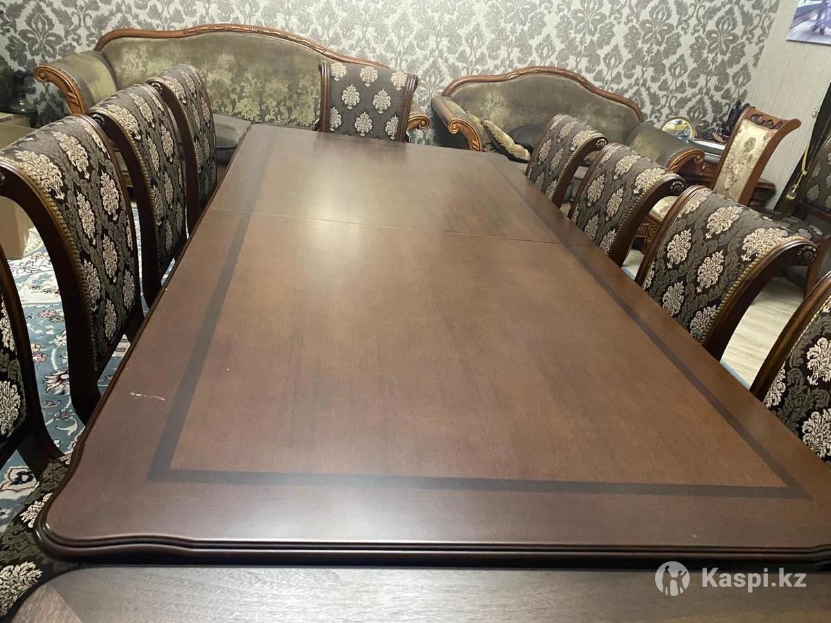 Добротный качественный стол 3 м, который еще удлиняется до 5 м. Широкий. Стулья 12 шт. ( 10 обычных, 2 с подлокотниками)
