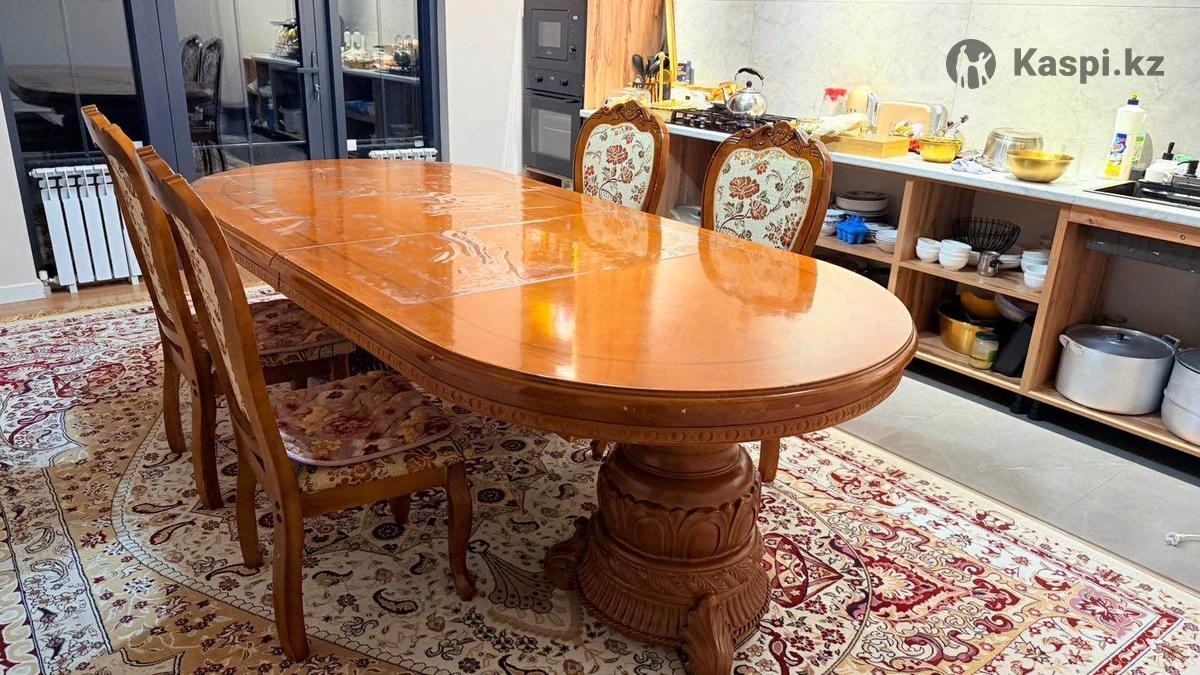 Продам большой обеденный стол со стульями. Стол овальный, раскладной: — длина 2 м в сложенном виде — 3 м в разложенном Подойдёт для большой семьи, праздников и гостей. Удобен для просторной кухни или гостиной. Стол деревянный, прочный, в хорошем состоянии. Стулья есть, но состояние не очень.(12 стульев) Пишите в каспи.