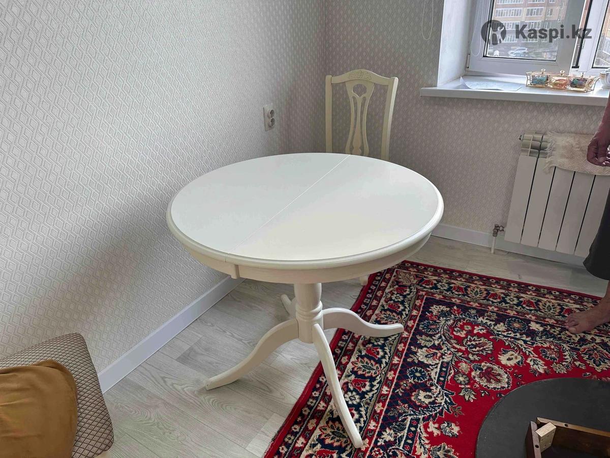 Продам Б/У стол с 4 стульями, качество отличное, стол белого цвета, стулья молочного, можно по отдельности , стол -50.000 тг, стулья 15.000 тг шт, пользовались аккуратно , стол размер в собранном виде 90х90( в разложенном -150х90). Район 10мкр, самовывоз.