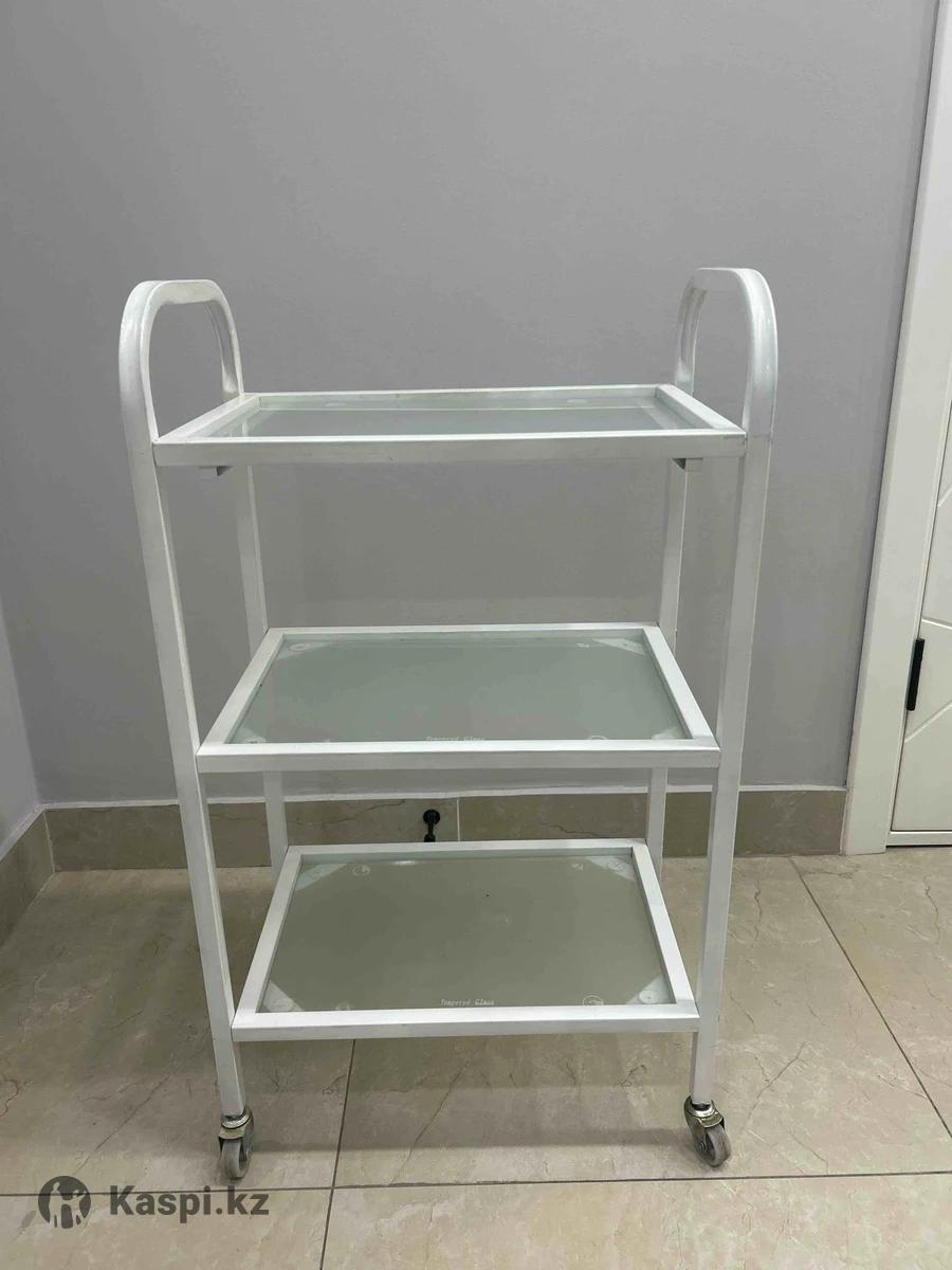 Продаю столик в отличном состоянии. Металлический каркас, 3 стеклянные полки, устойчивый на колесах. Подходит для косметолога, процедурного кабинета, салона красоты. Чистый, аккуратный, без повреждений.