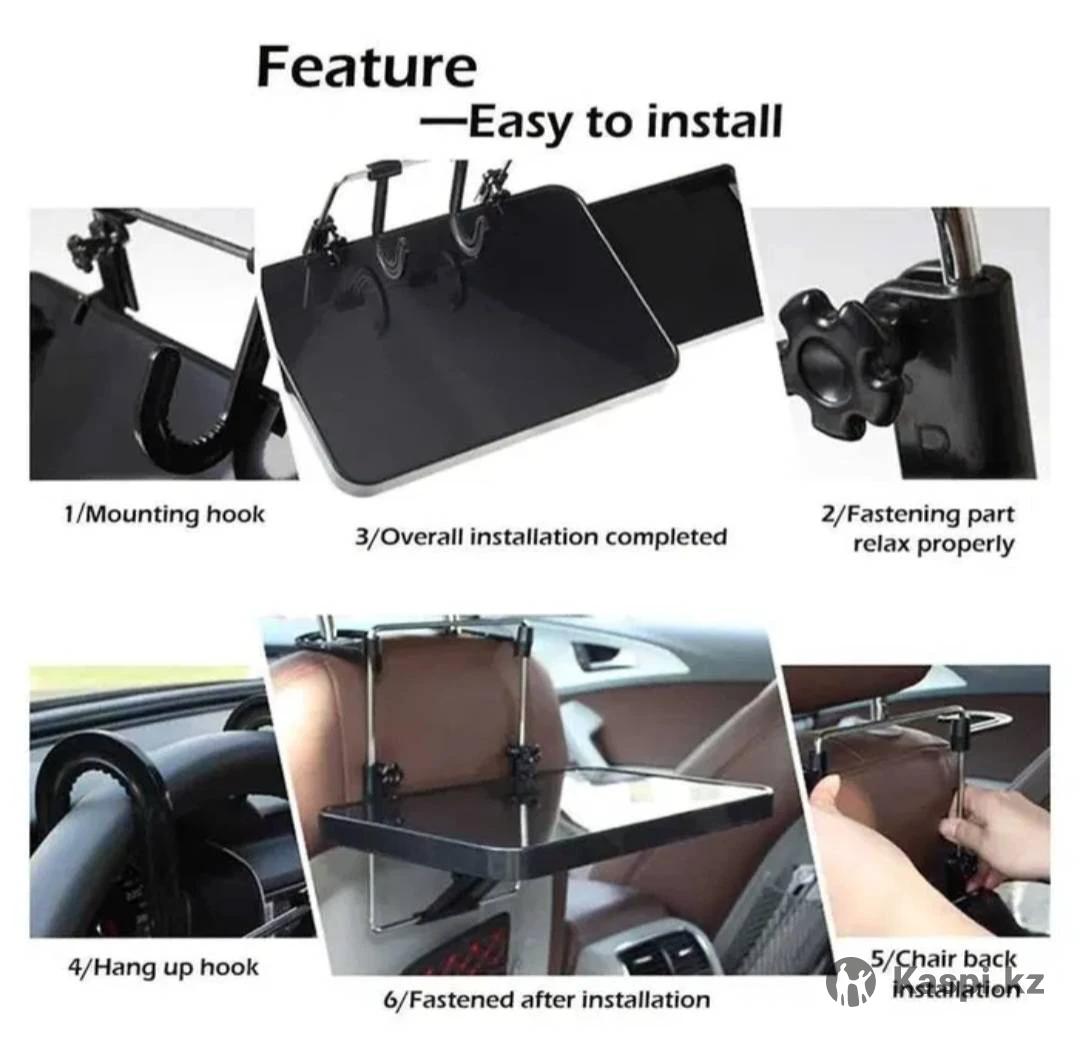 Столик для автомобиля. Изготовлен из высококачественного АБС-пластика, прочный и долговечный. Может быть установлен на рулевом колесе и спинке сиденья автомобиля. Новый в упаковке. Доставка по Республике Казахстан.