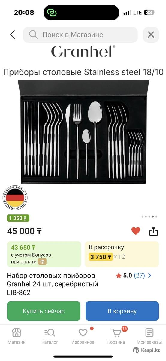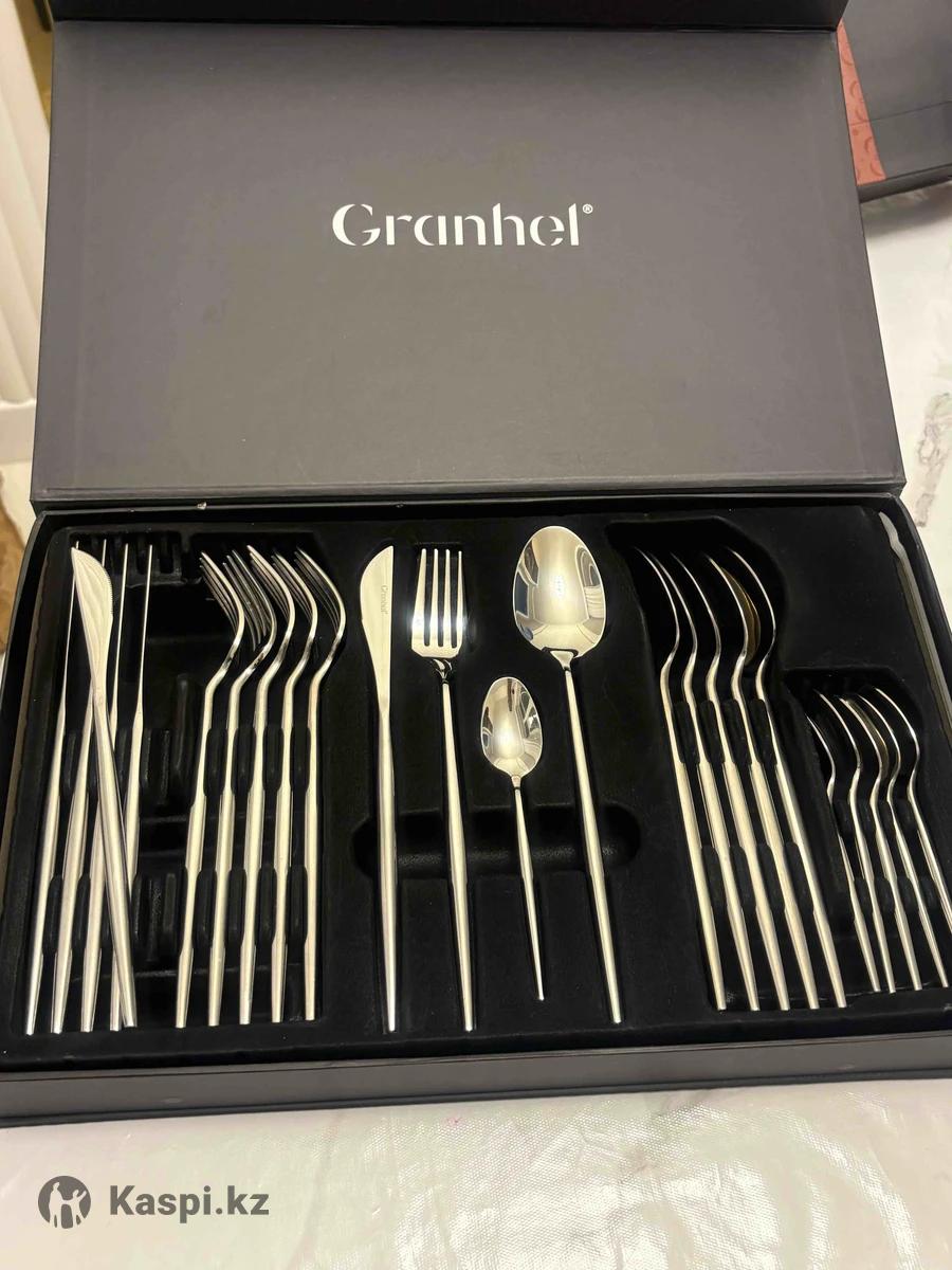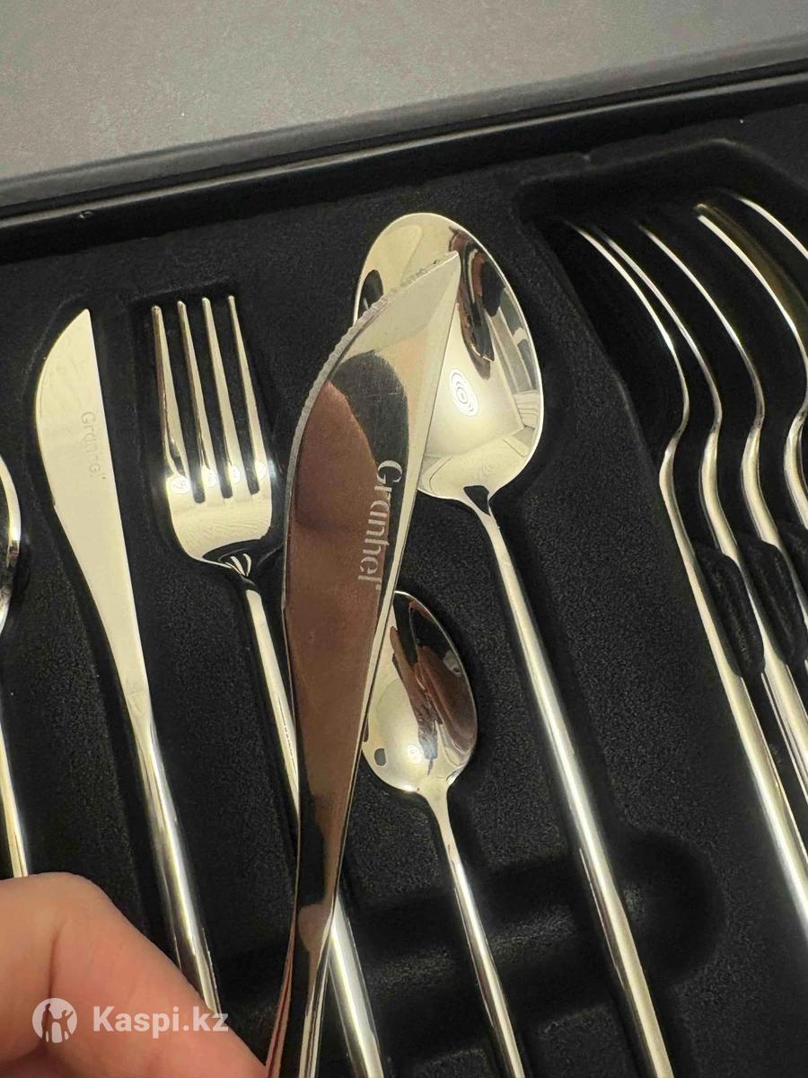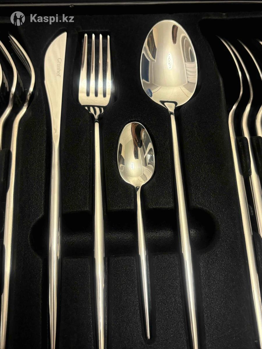 Продам новый комплект столовых приборов (вилки, столовые ложки, чайные ложки и персональные ножи). На каспи стоит дороже. Очень современный и красивый набор, качественный металл нержавейка