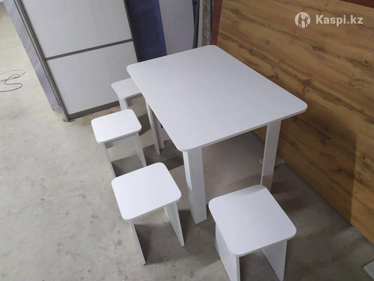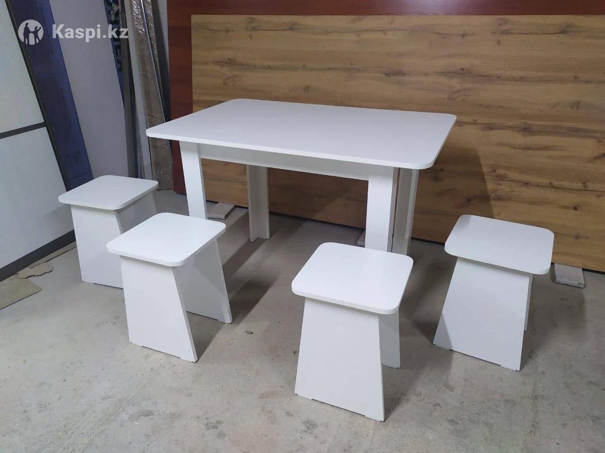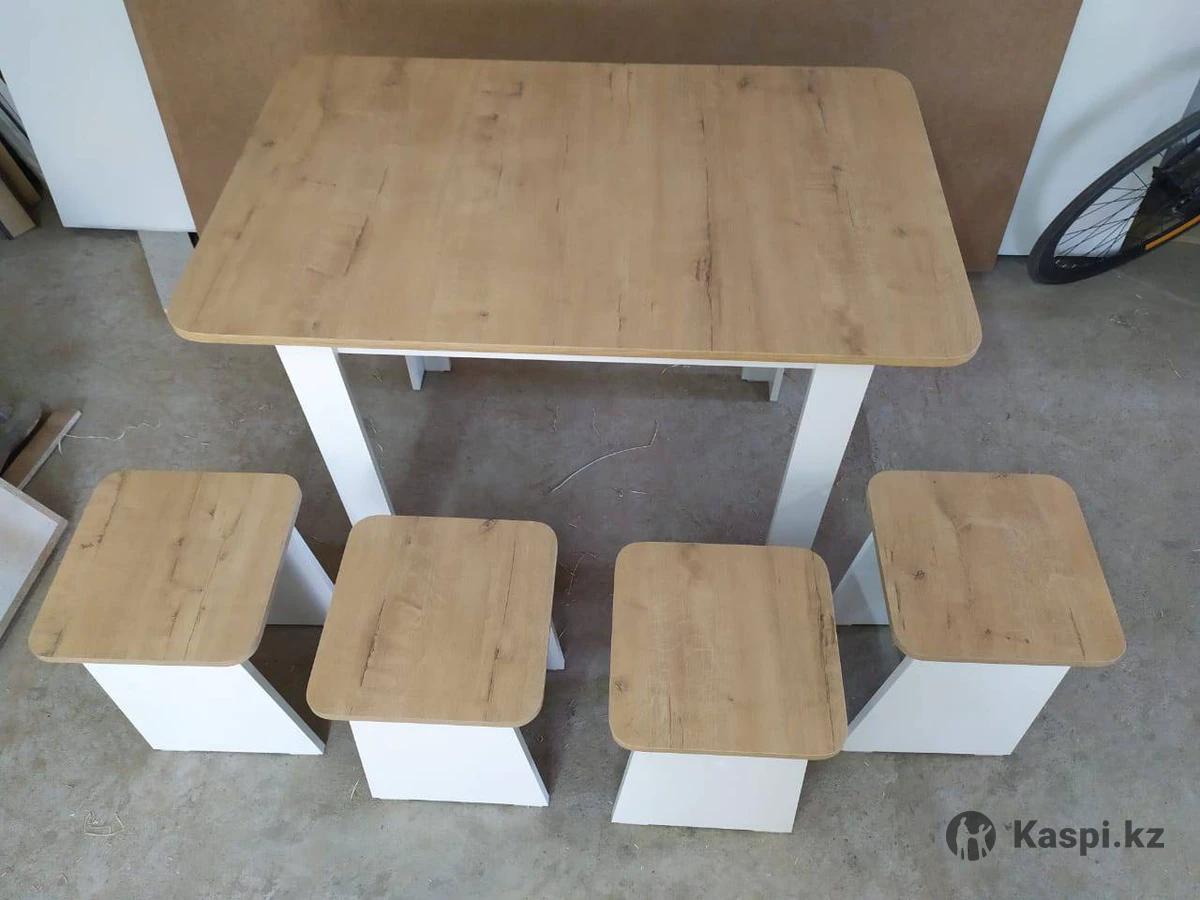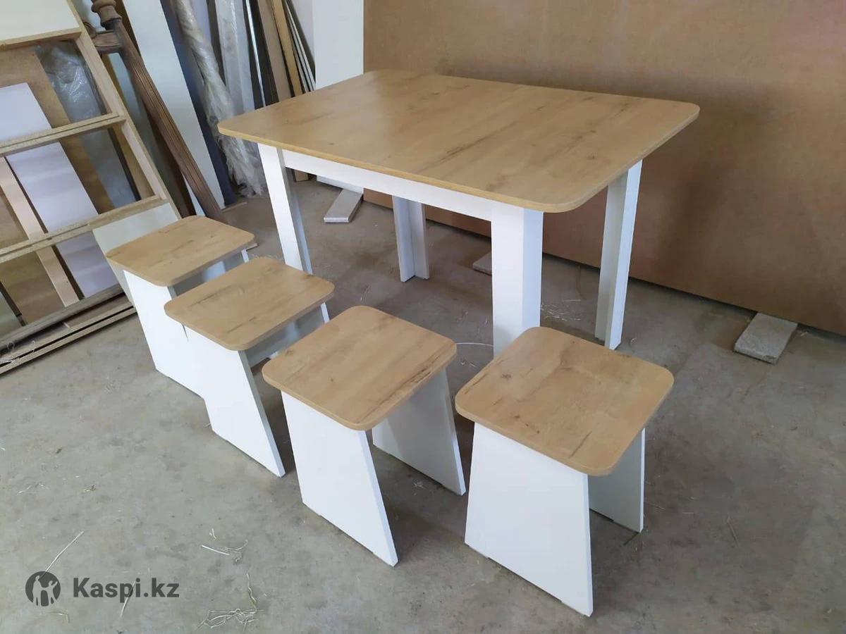 Продам стол и 4 табуретки. Размер стола 110—70 высота 75 цвет белый и дуб вотан Доставка по городу 3000тг