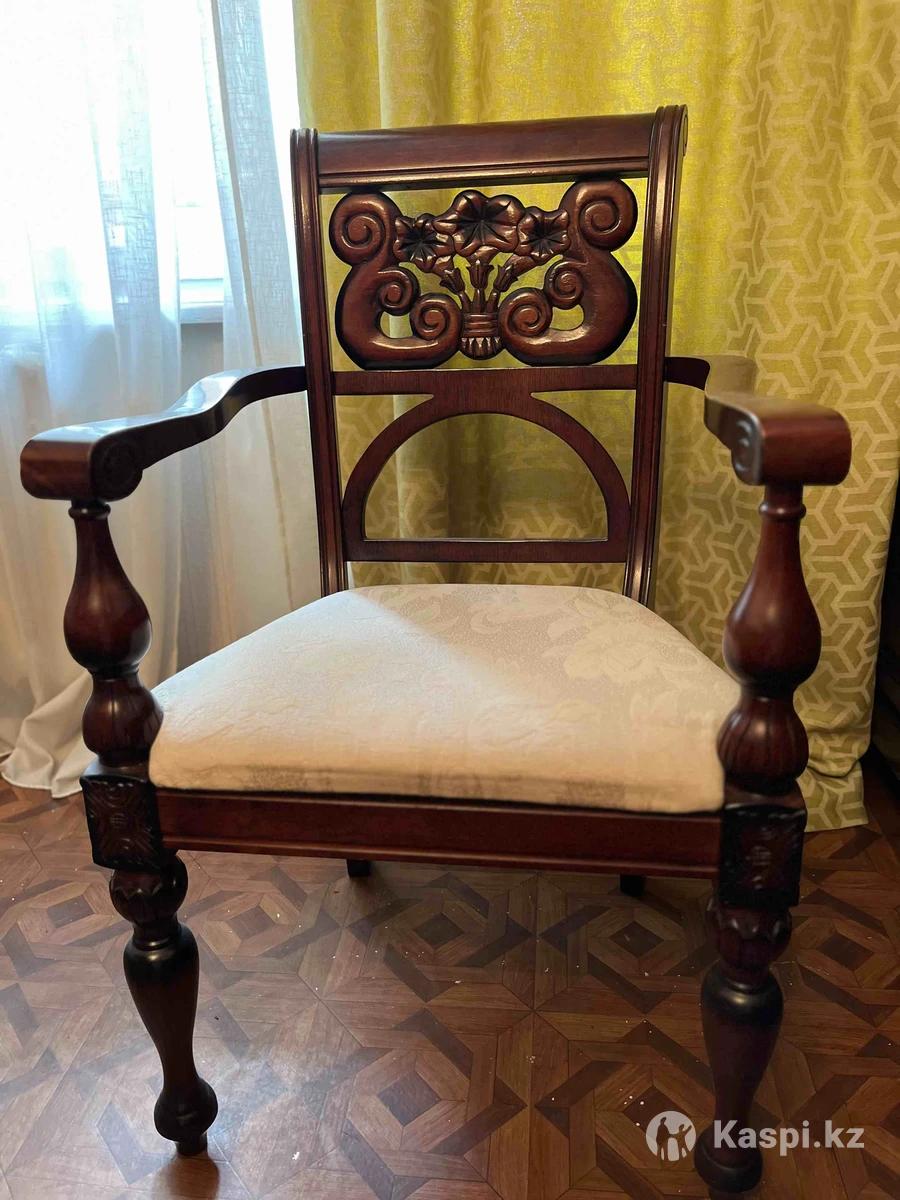Обеденный стол на 6 персон, журнальный столик, 6 стульев без подлокотников, 2 стула с подлокотниками. Массив дерева. Цена договорная.