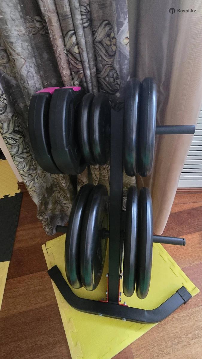 Из-за переезда продаю стойку для весов в комплекте с блинами 2 × 20 кг 2 × 15 кг 2 × 10 кг 4 × 5 кг Диаметр 26 мм