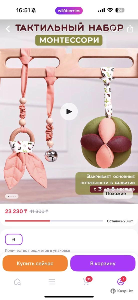 Продам тренажер Монтессори от бренда Pustyshka, а также тактильный набор Монтессори к нему от бренда Жук и Плут. Все в идеальном состоянии. Пользовались пару месяцев, пока дочь не умела переворачиваться на живот. Цены на новые такие видно на скринах. Можно через Каспи ред оформить. Самовывоз после 19:00 с 4 мкр 7д. Пожалуйста, не звоните, пишите на .